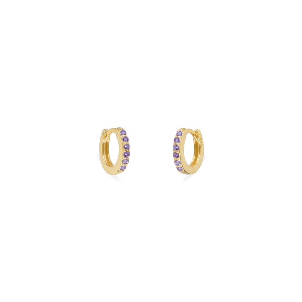 Pendientes aros en plata de ley chapados en oro con circonitas lila