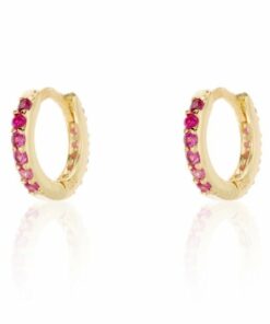 Pendientes aros en plata de ley chapados en oro con circonitas rosas