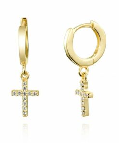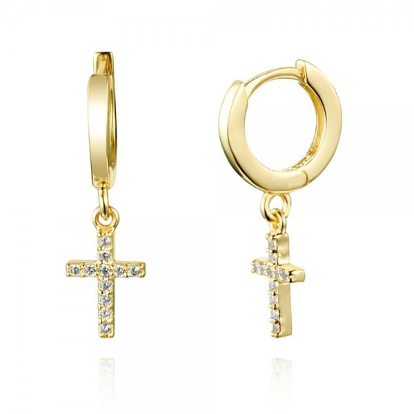 Pendientes aros en plata de ley chapados en oro con colgante en forma de cruz