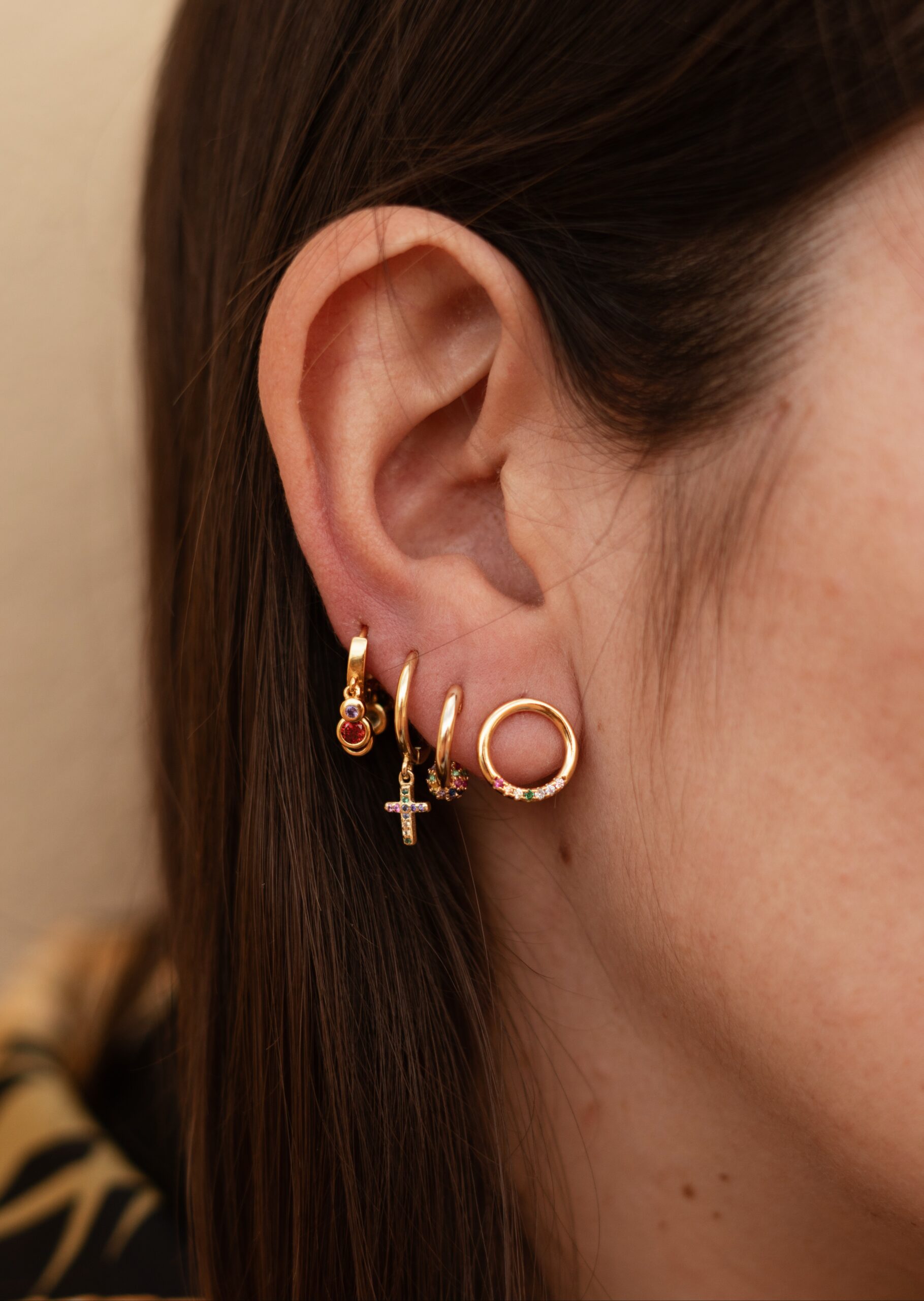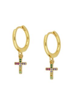 Pendientes aros en plata de ley chapados en oro con colgante en forma de cruz multicolor