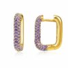 Pendientes aros en plata de ley chapados en oro de forma rectangular con circonitas