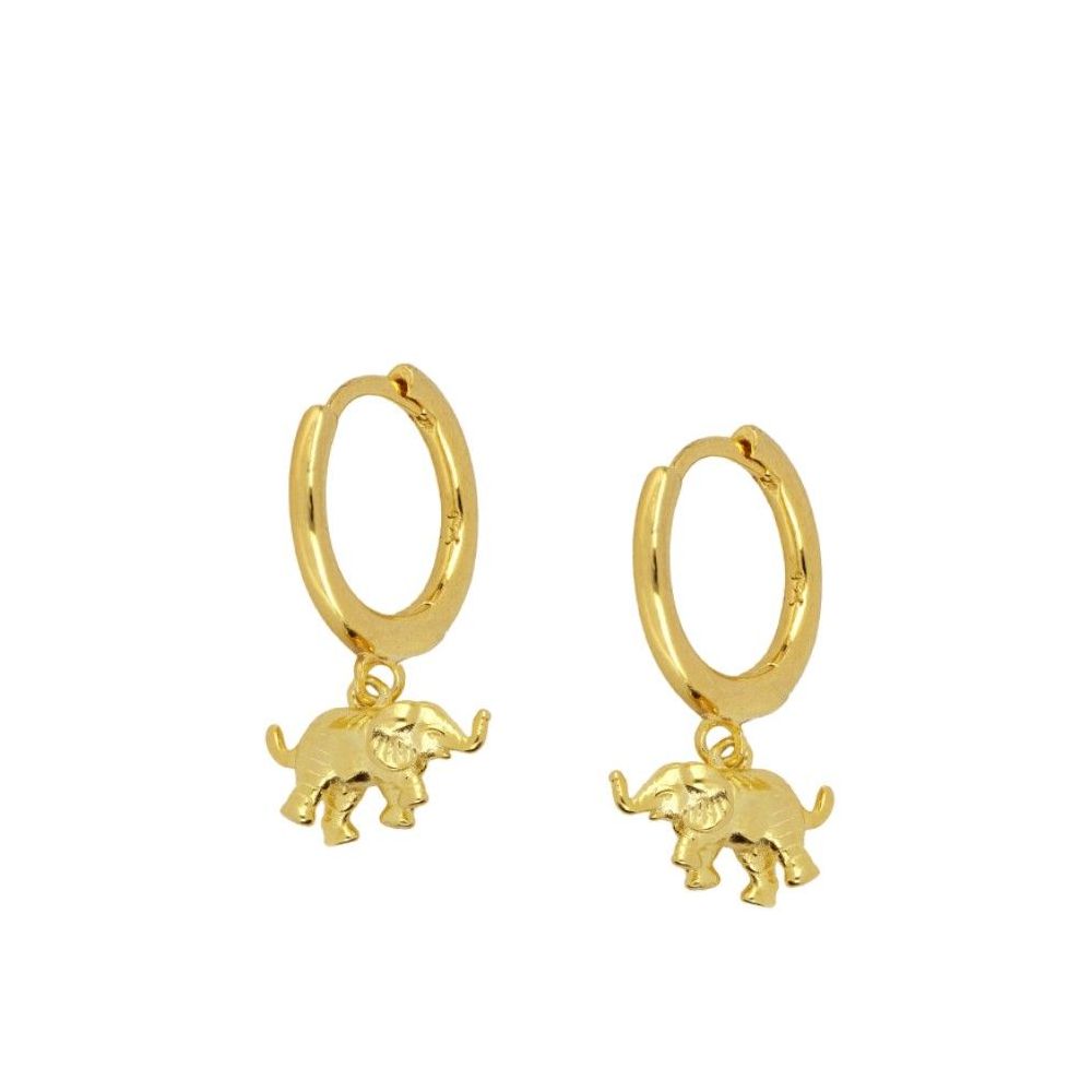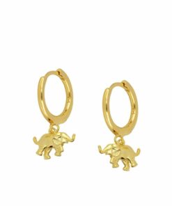 Pendientes aros en plata de ley chapados en oro con colgante en forma de elefante