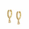 Pendientes aros de circonitas en plata de ley chapados en oro con circonita lila colgando