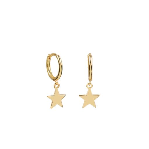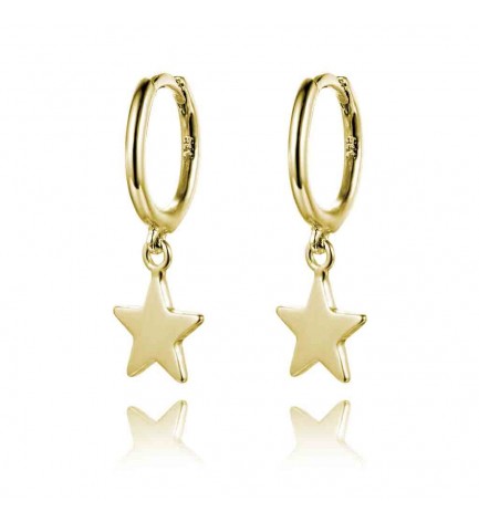 Pendientes aros en plata de ley chapados en oro con colgante en forma de estrella