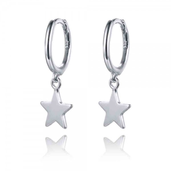Pendientes aros en plata de ley con colgante en forma de estrella