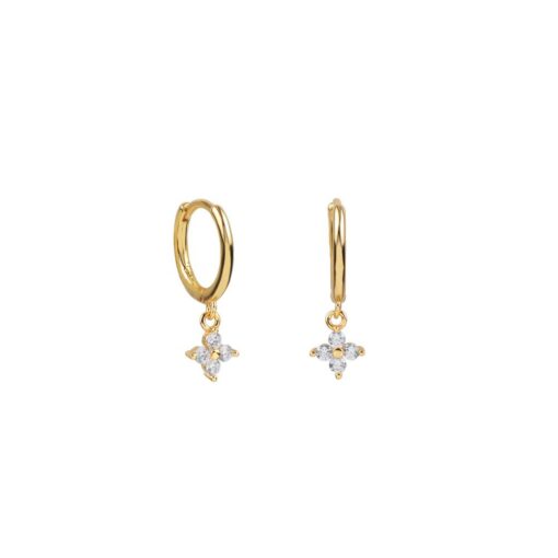 Pendientes aros en plata de ley chapado en oro con colgante en forma de flor de circonitas