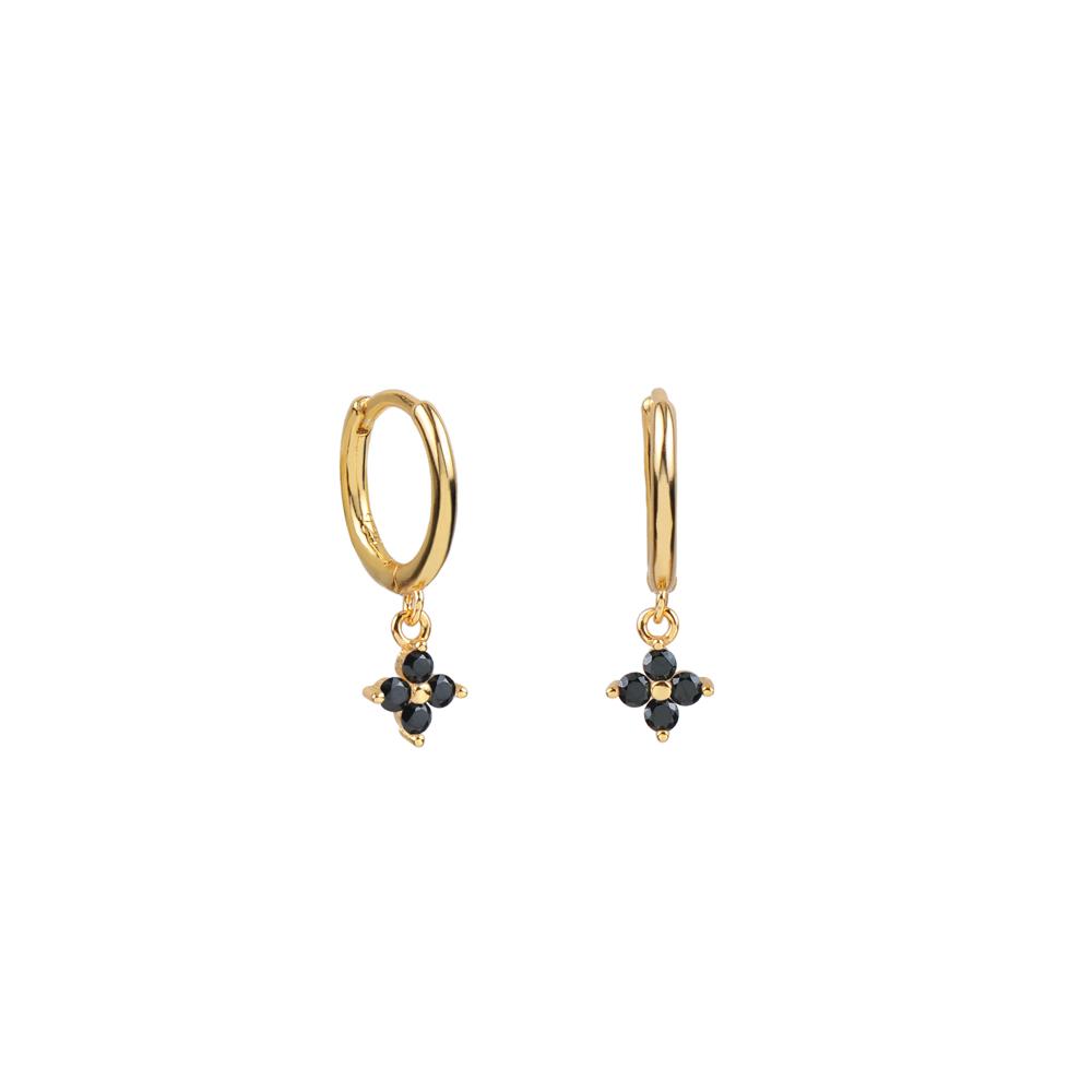 Pendientes aros en plata de ley chapado en oro con colgante en forma de flor de circonitas negras