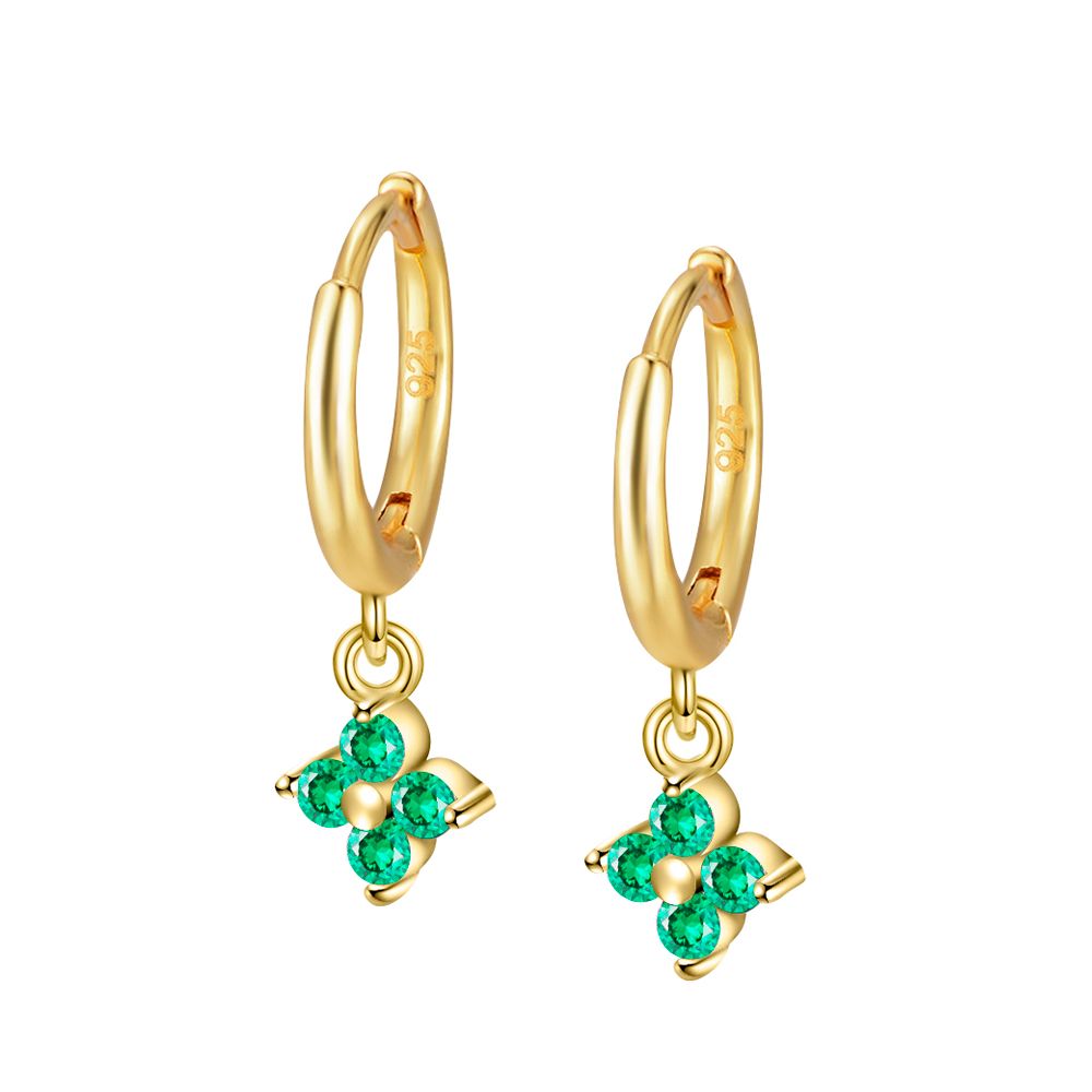 Pendientes aros en plata de ley chapado en oro con colgante en forma de flor de circonitas verdes turmalina.