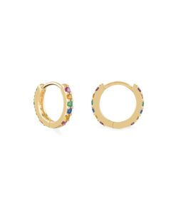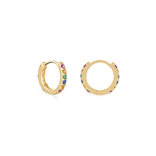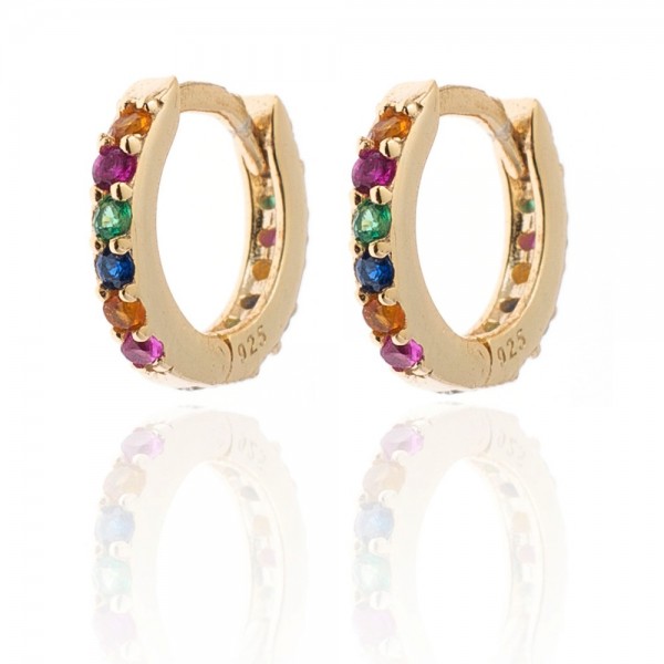 Pendientes aros en plata de ley chapados en oro con ciconitas de colores
