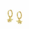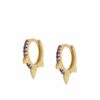 Pendientes aros en plata de ley chapados en oro con colgante en forma circular con ojo de circonitas de colores
