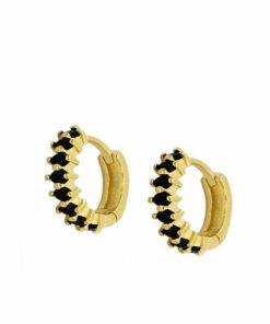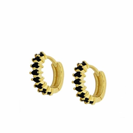 Pendientes aros en plata de ley chapados en oro con ocho circonitas negras
