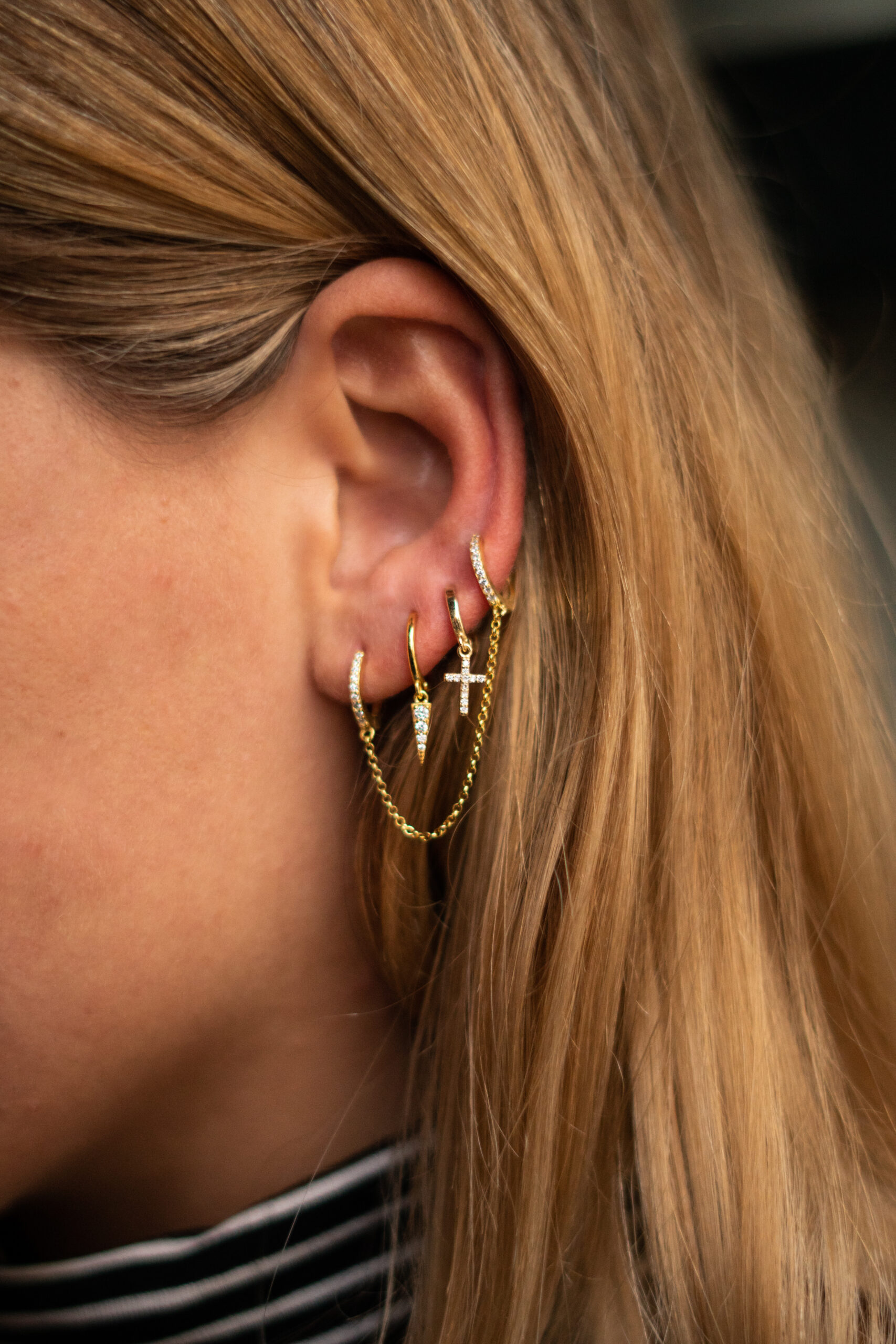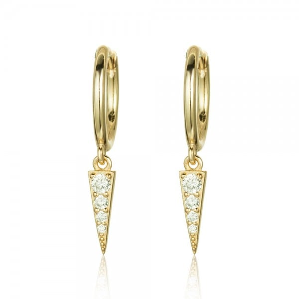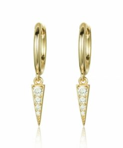 Pendientes aros en plata de ley chapados en oro con colgante en forma de pico y circonitas