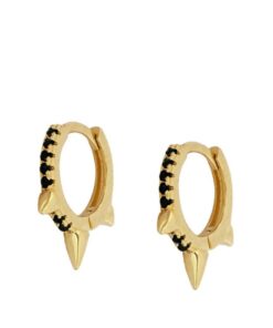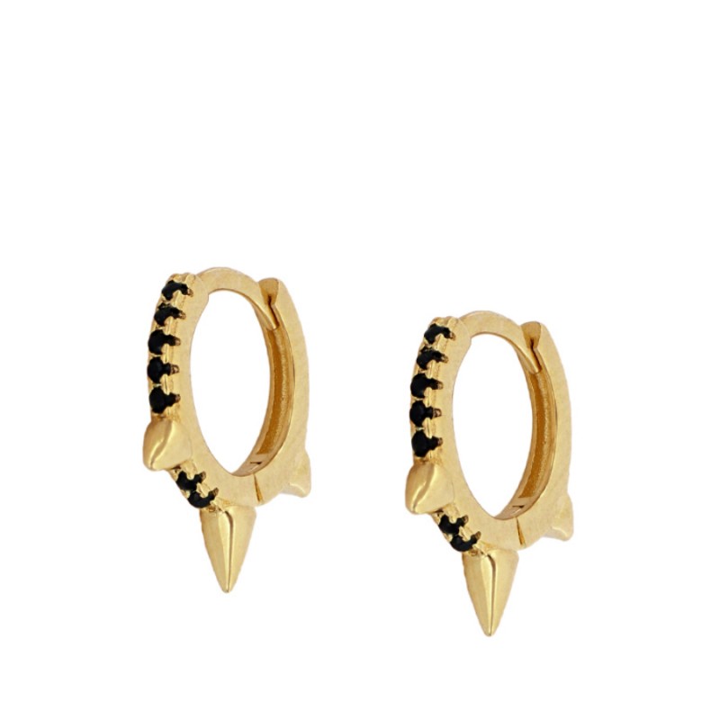 Pendientes aros en plata de ley chapados en oro con pinchos y circonitas negras.