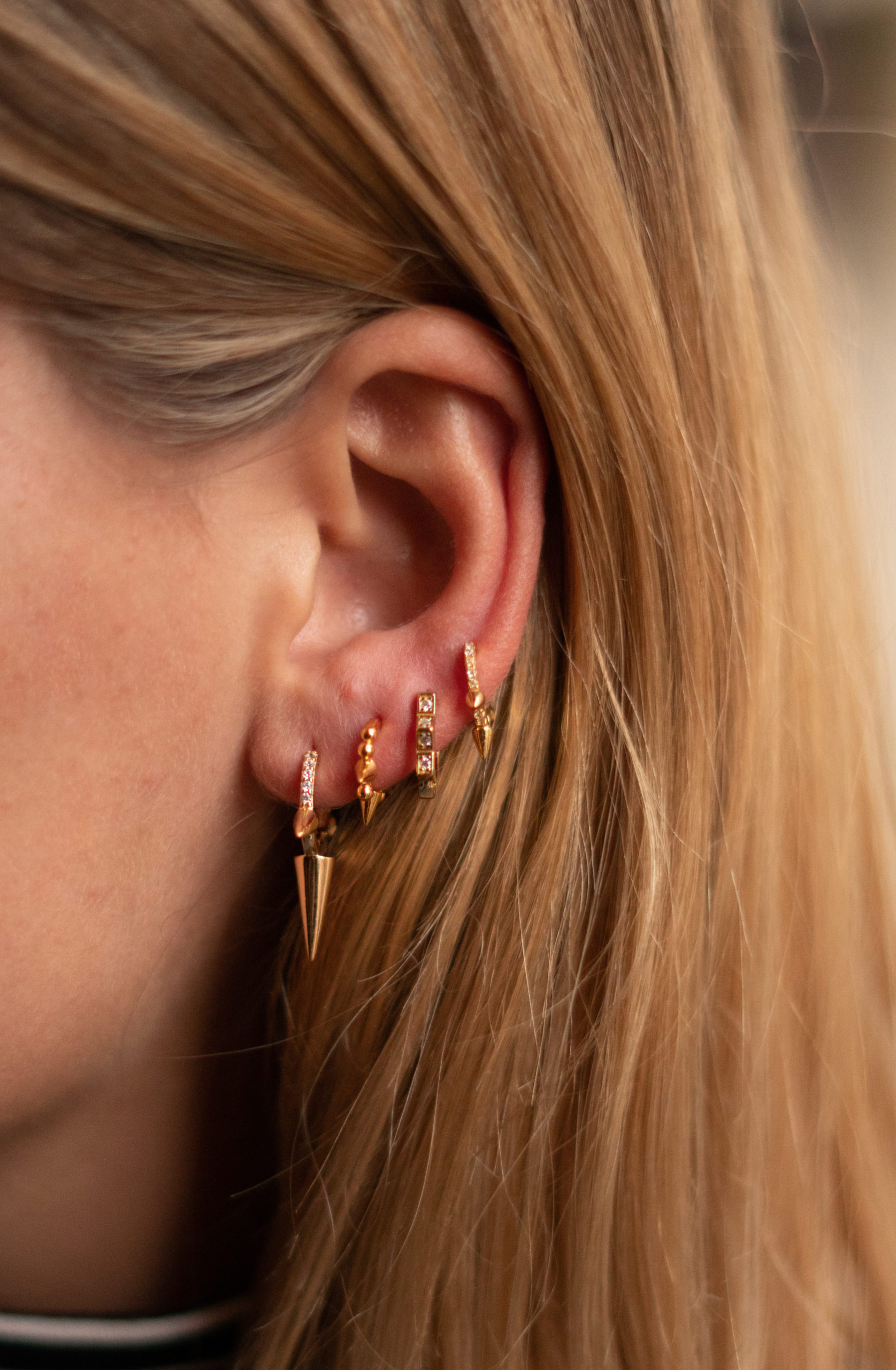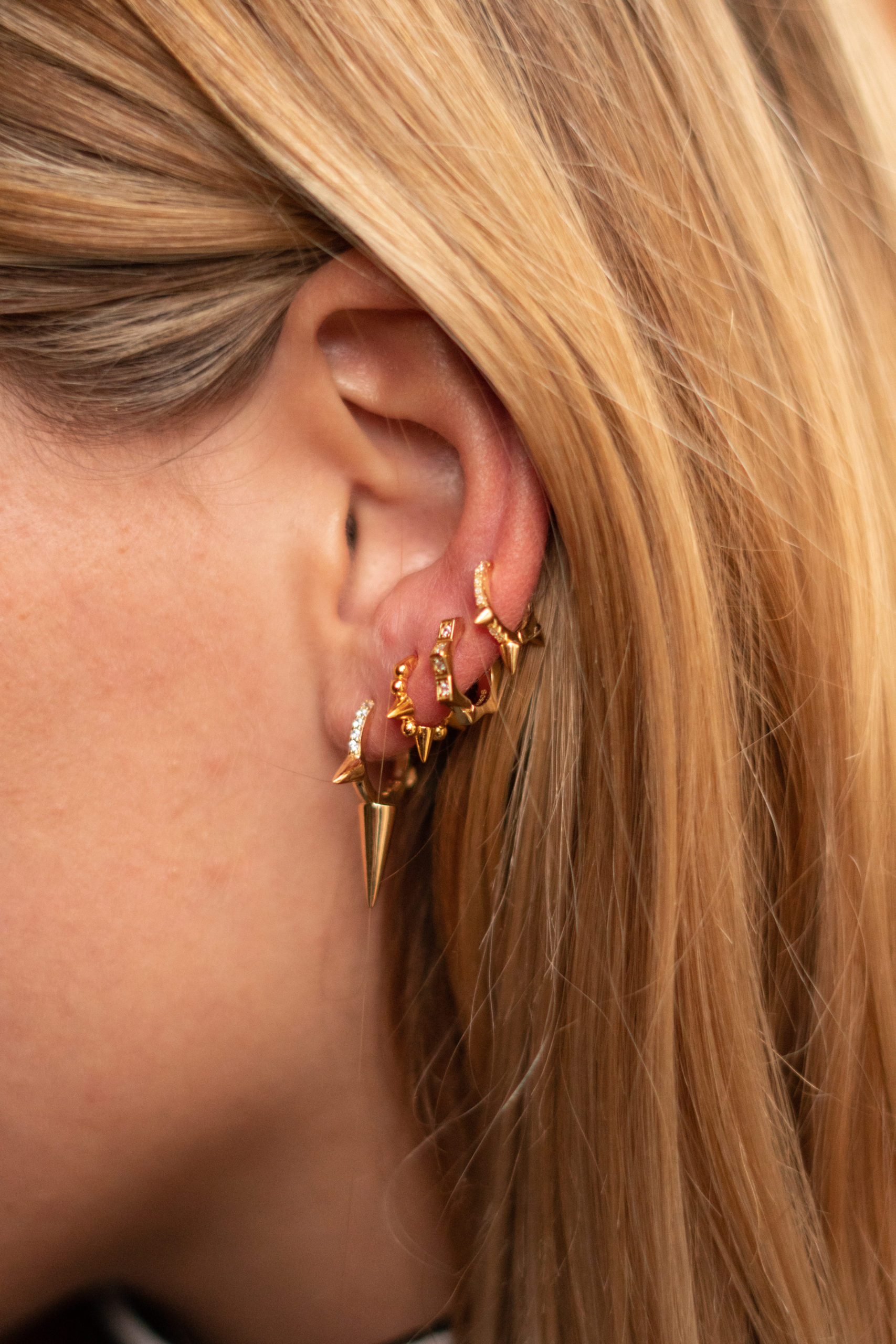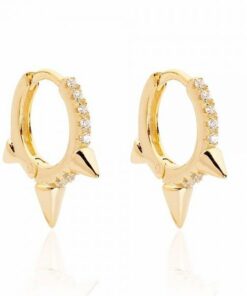 Pendientes aros en plata de ley chapados en oro con pinchos y circonitas