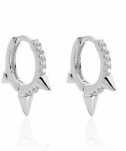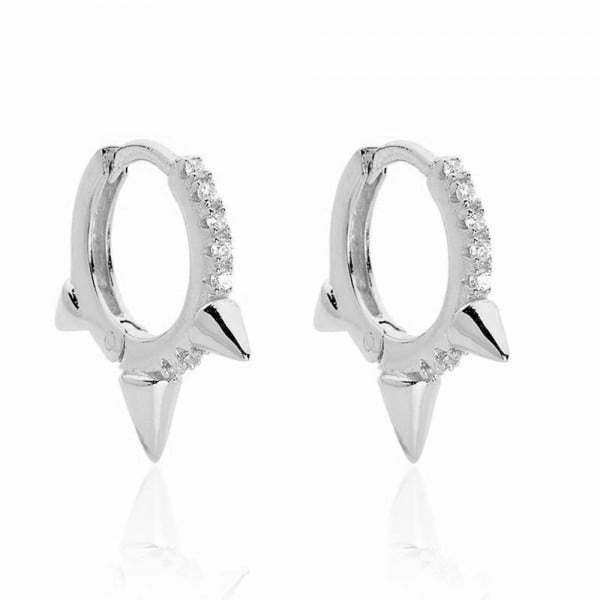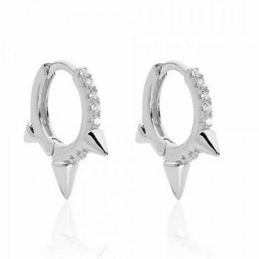 Pendientes aros en plata de ley con pinchos y circonitas