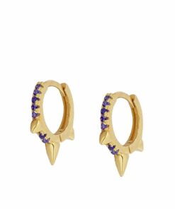 Pendientes aros en plata de ley chapados en oro con pinchos y circonitas lilas.
