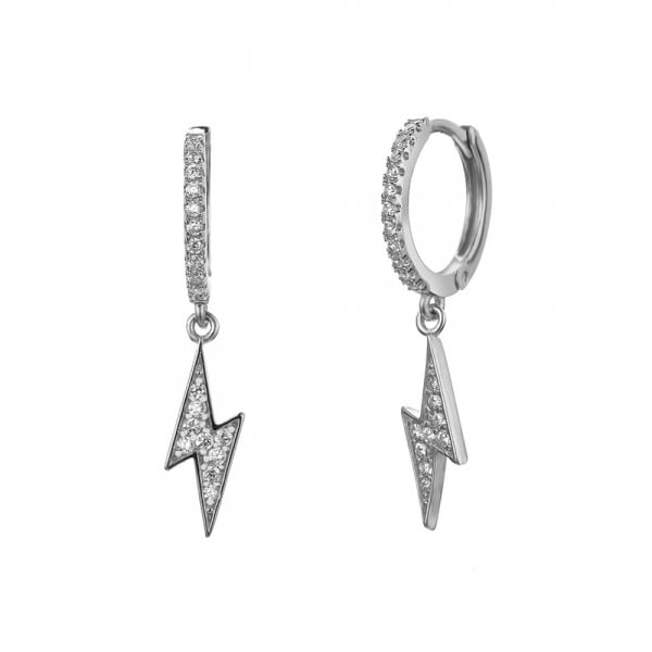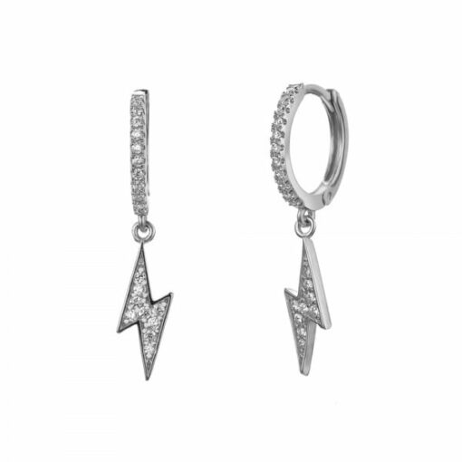 Pendientes aros en plata de ley con colgante en forma de rayo y circonitas