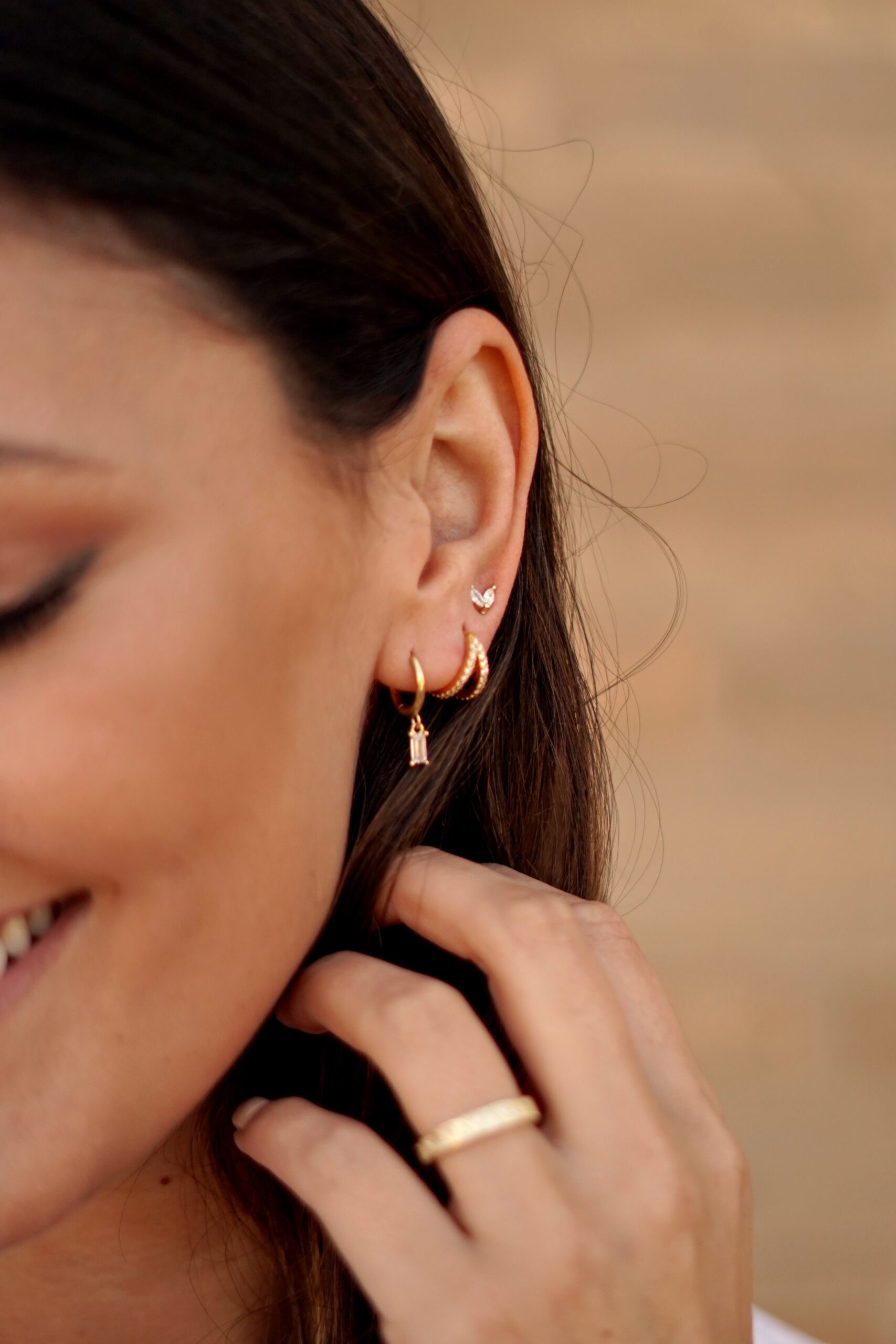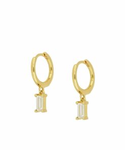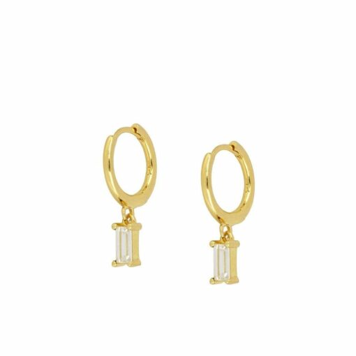 Pendientes aros en plata de ley chapados en oro con circonita rectangular colgando