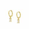 Pendientes aros en plata de ley chapados en oro con circonita lila rectangular colgando