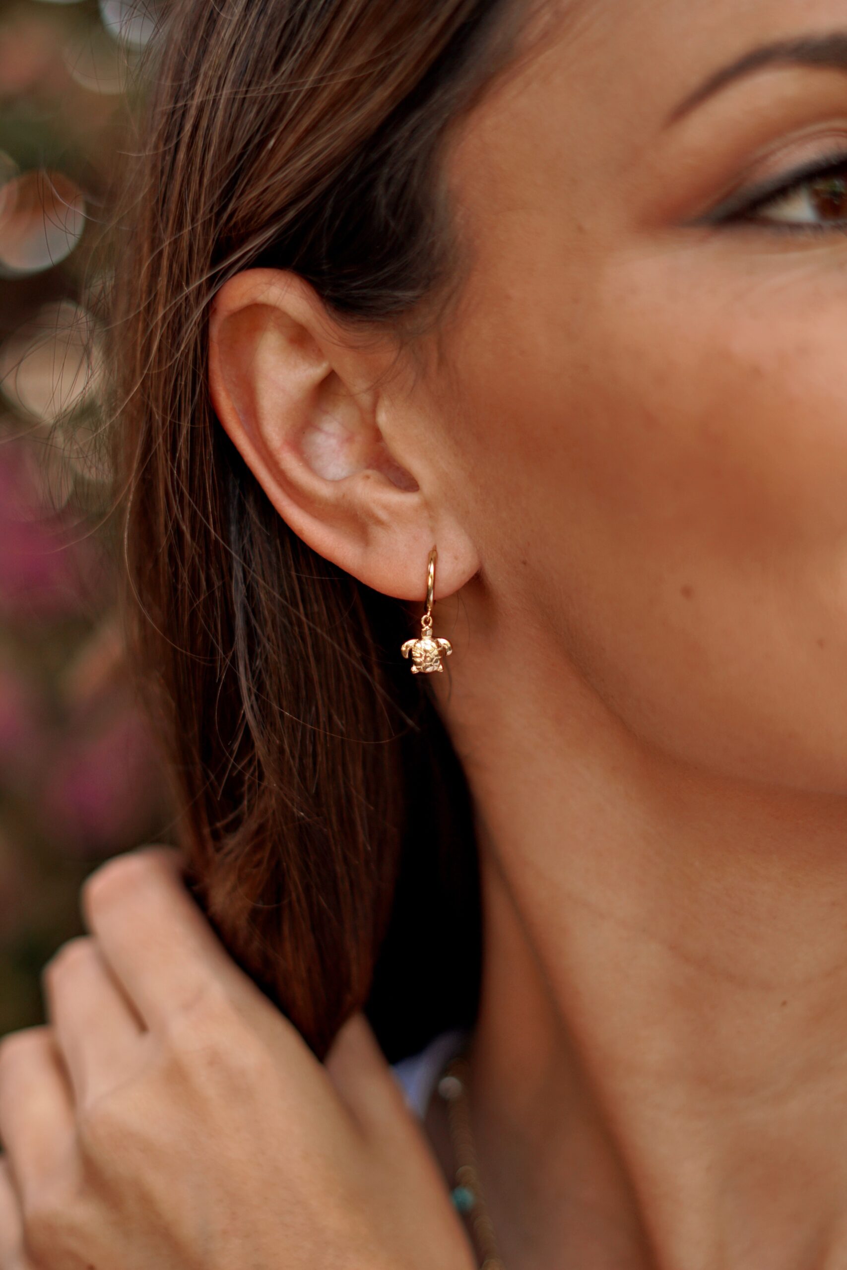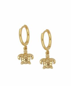 Pendientes aros en plata de ley chapados en oro con colgante en forma de tortuga