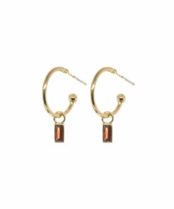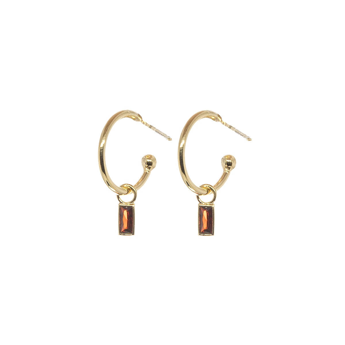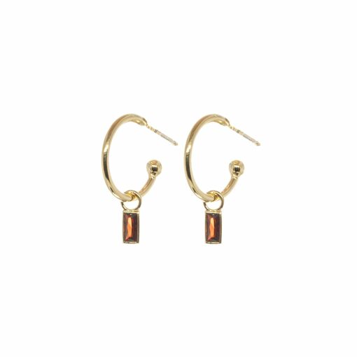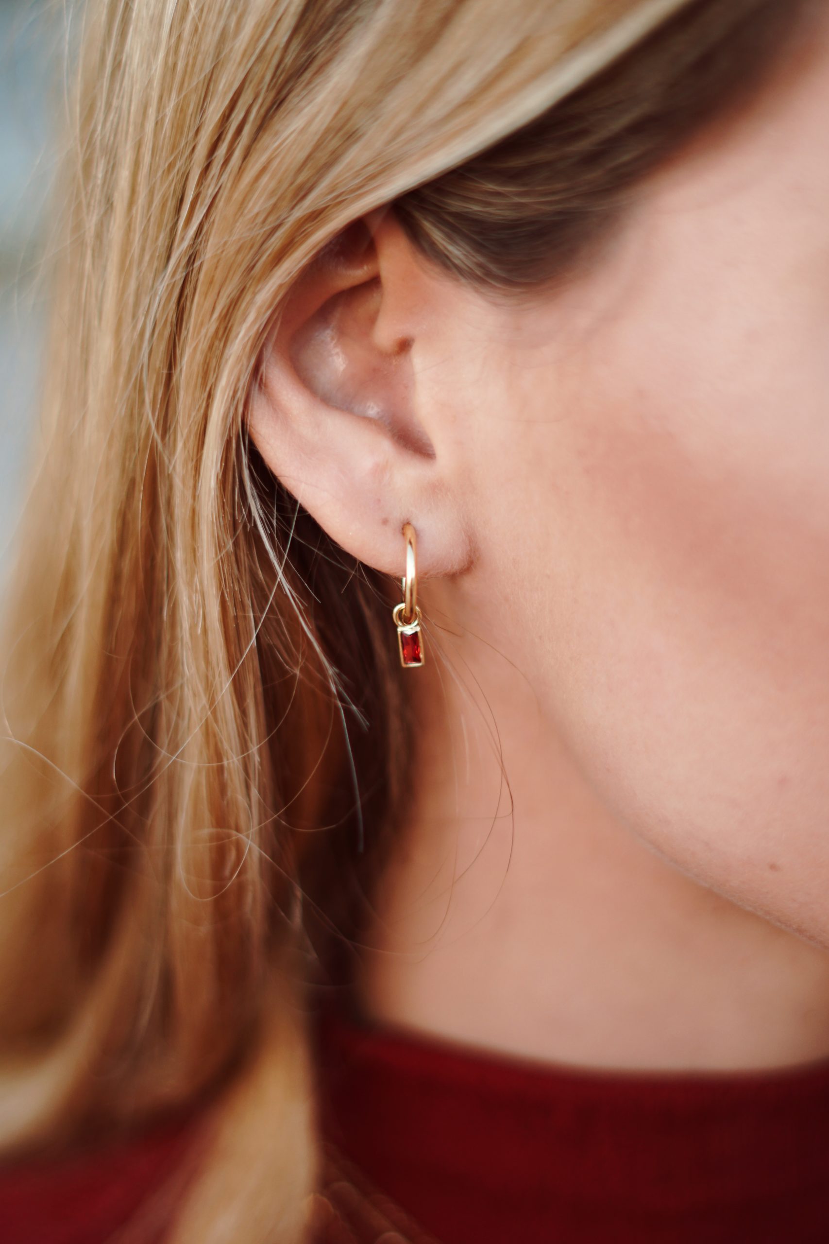 Pendientes aros en plata de ley chapados en oro con colgante en forma de circonita rectangular rojo