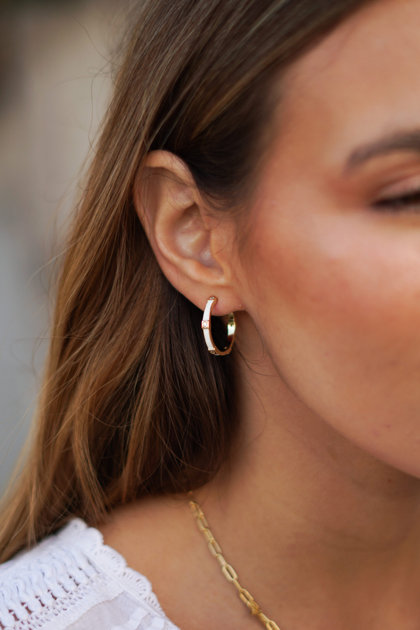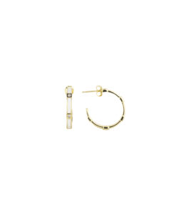 Pendientes aros en plata de ley chapados en oro y esmalte blanco con cuatro circonitas.