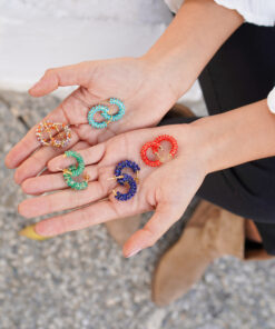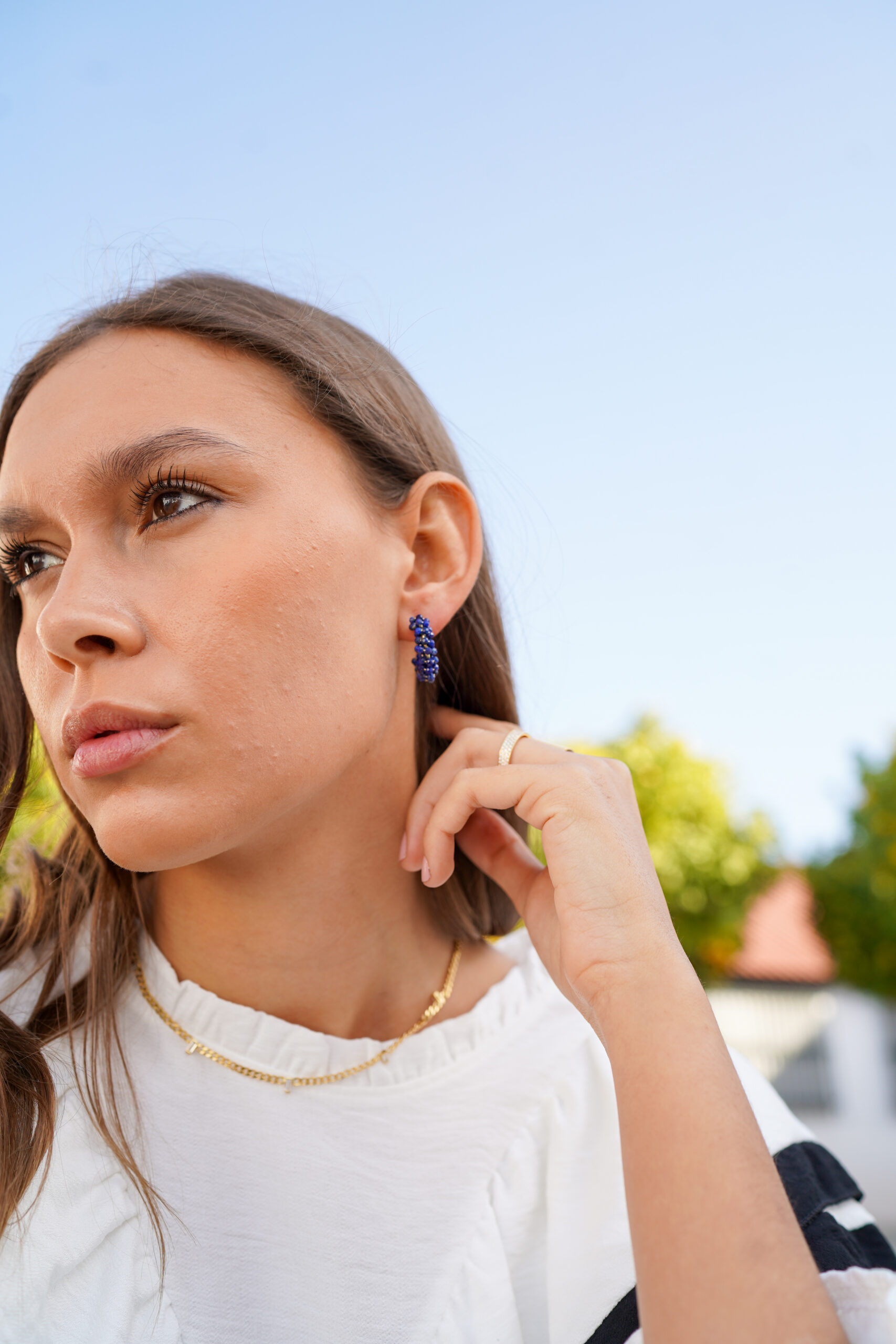Pendientes aro en plata de ley chapado en oro cubierto en espiral por mini piedras de lapislázuli natural.