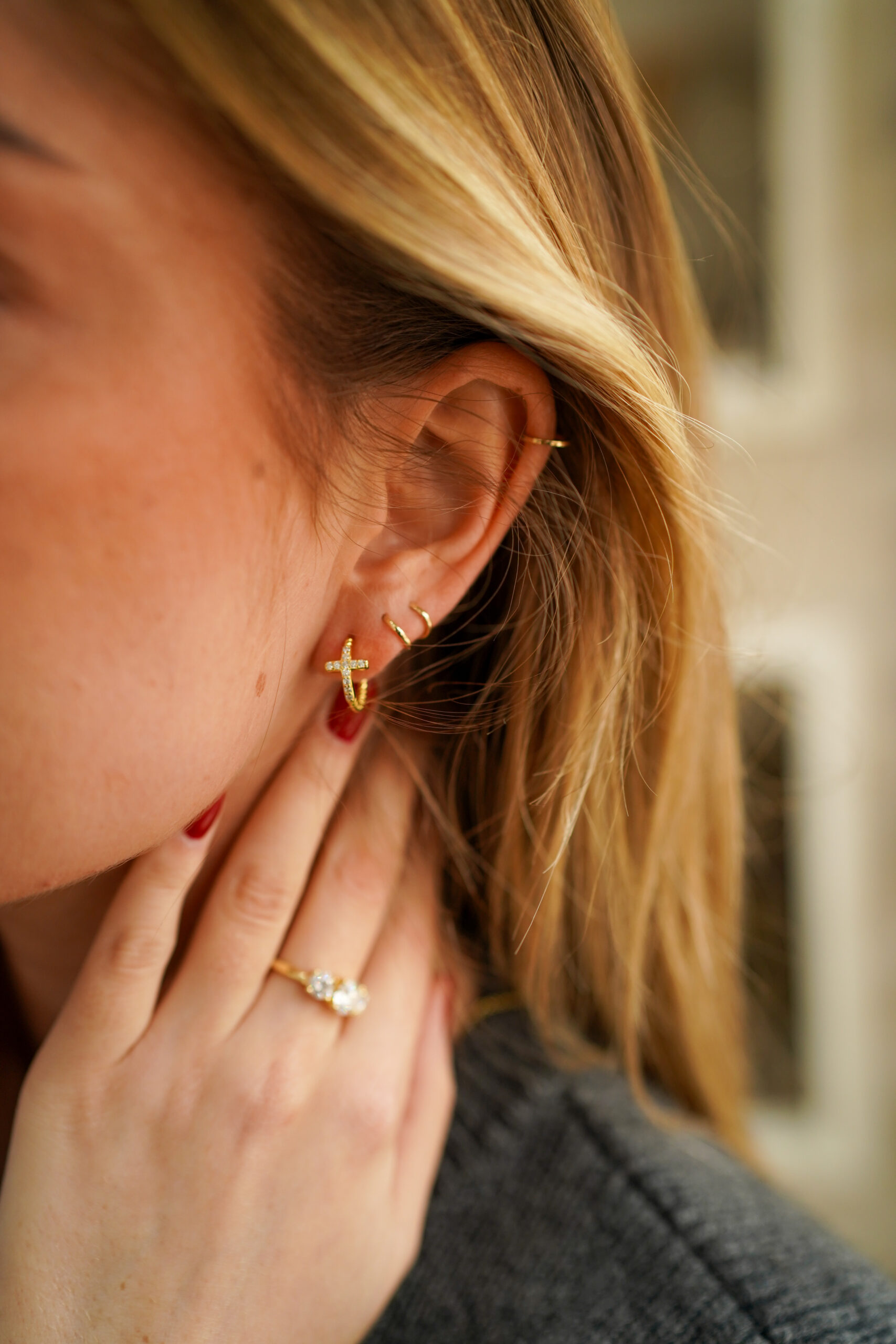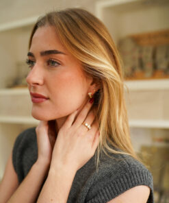 Pendientes tipo aro de plata de ley chapados en oro, con un delicado diseño de cruz frontal decorada con circonitas brillantes. El aro presenta un acabado texturizado que aporta carácter y un sutil aire artesanal, mientras que el tamaño reducido los convierte en una pieza elegante y versátil, ideal para llevar a diario o combinar con otros pendientes.