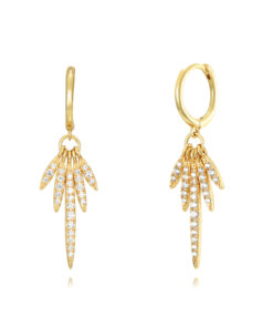 Pendientes aros en plata de ley chapados en oro con cinco picos de circonitas colgando.