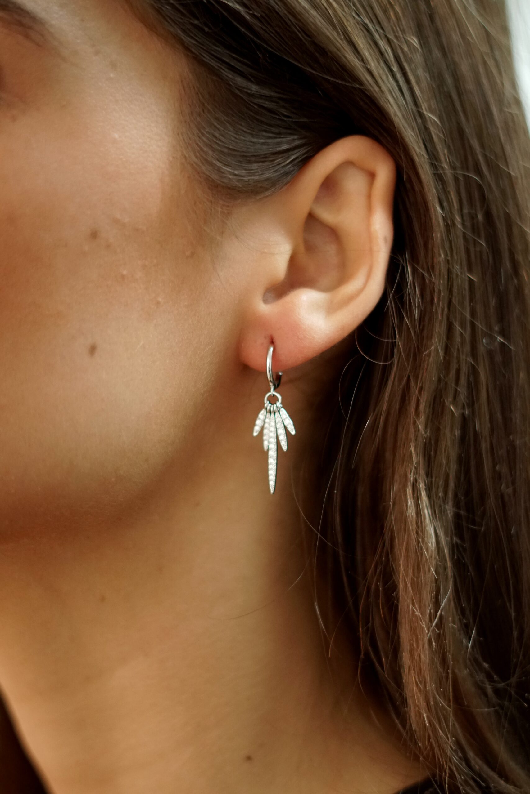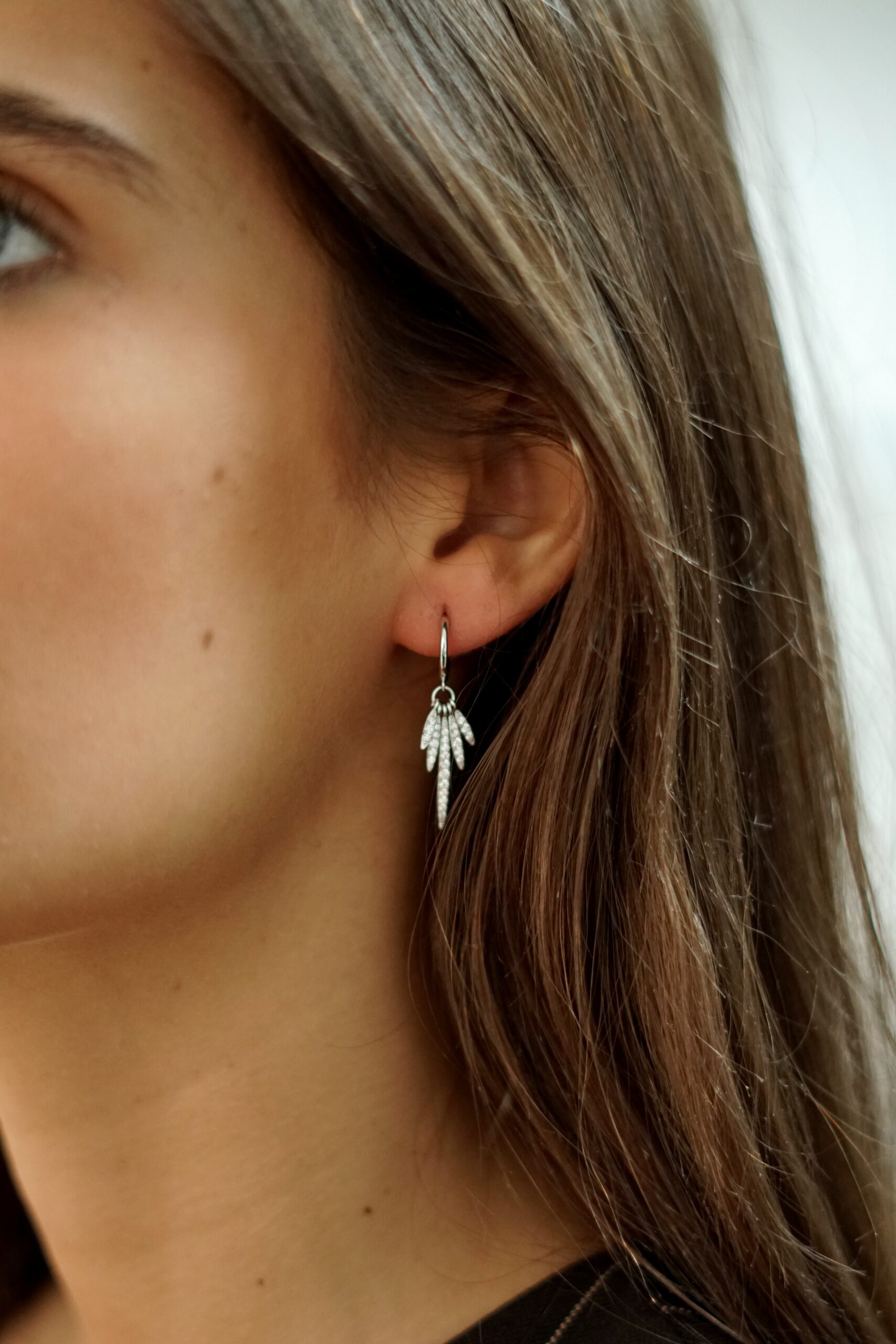 Pendientes aros en plata de ley con cinco picos de circonitas colgando.