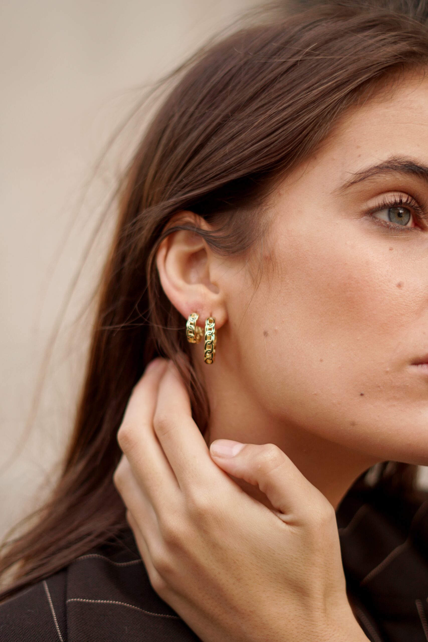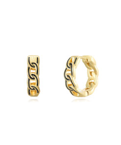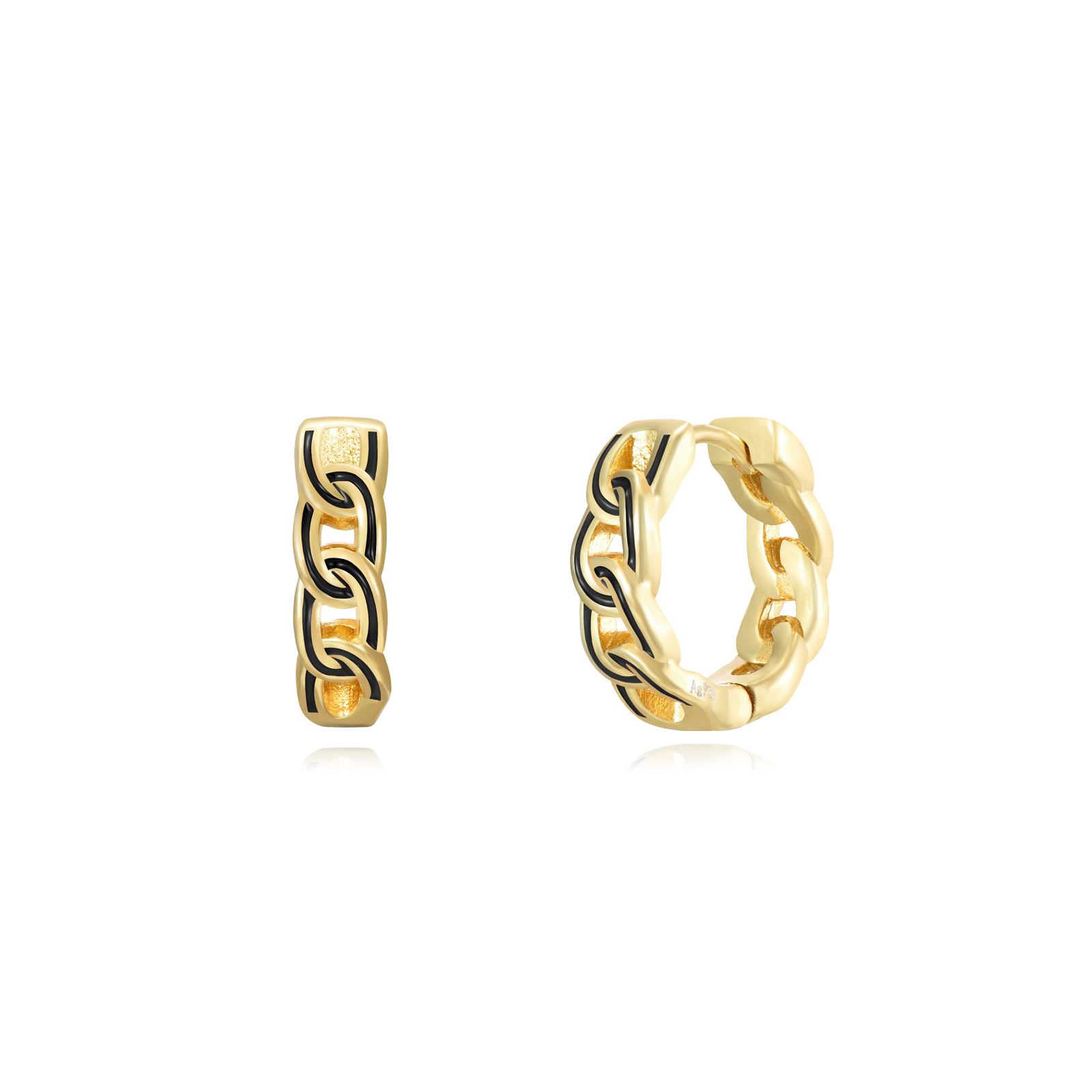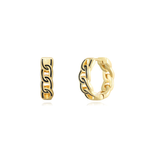 Pendientes aros de eslabones en plata de ley chapados en oro con esmalte negro.