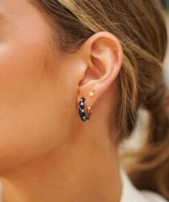 Pendientes aros en plata de ley chapado en oro y esmalte azul con circonitas.