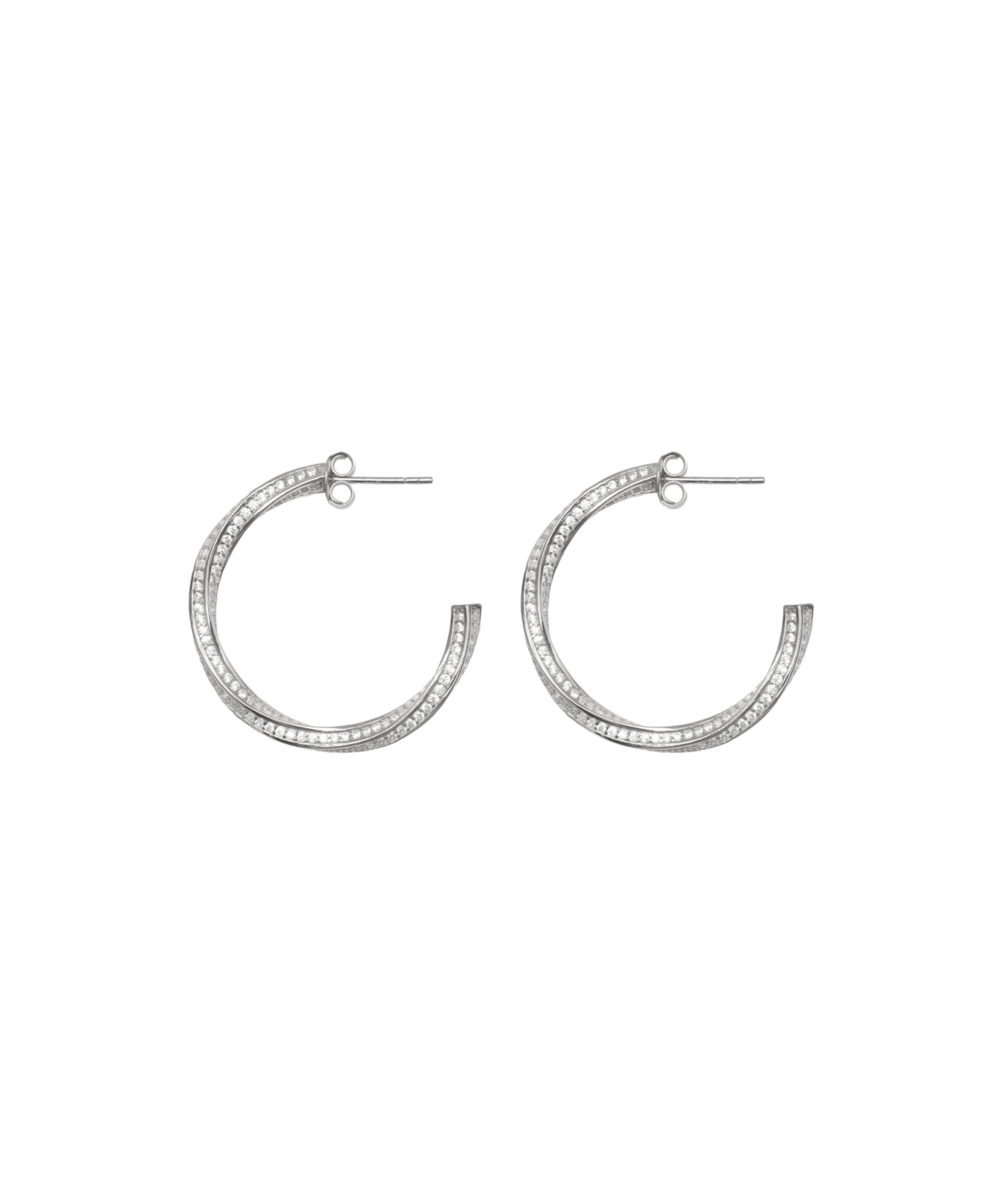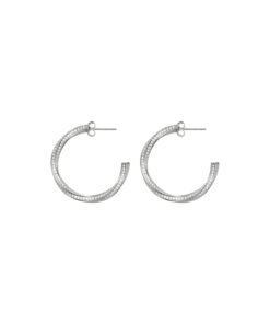 Pendiente aro de 29 mm elaborado en plata de ley y circonitas, con un diseño trenzado que aporta elegancia y un toque contemporáneo. La pieza destaca por su acabado detallado y su versatilidad, ideal tanto para ocasiones formales como para el día a día.