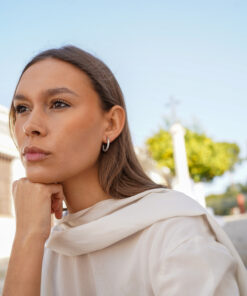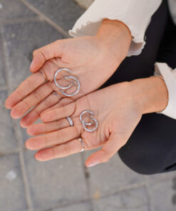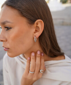 Pendiente aro de 22 mm elaborado en plata de ley y circonitas, con un diseño trenzado que aporta elegancia y un toque contemporáneo. La pieza destaca por su acabado detallado y su versatilidad, ideal tanto para ocasiones formales como para el día a día.