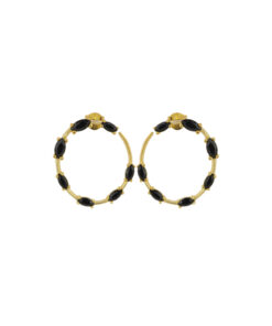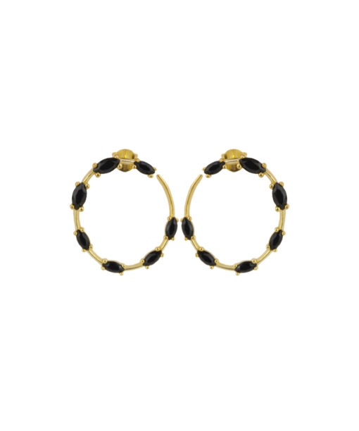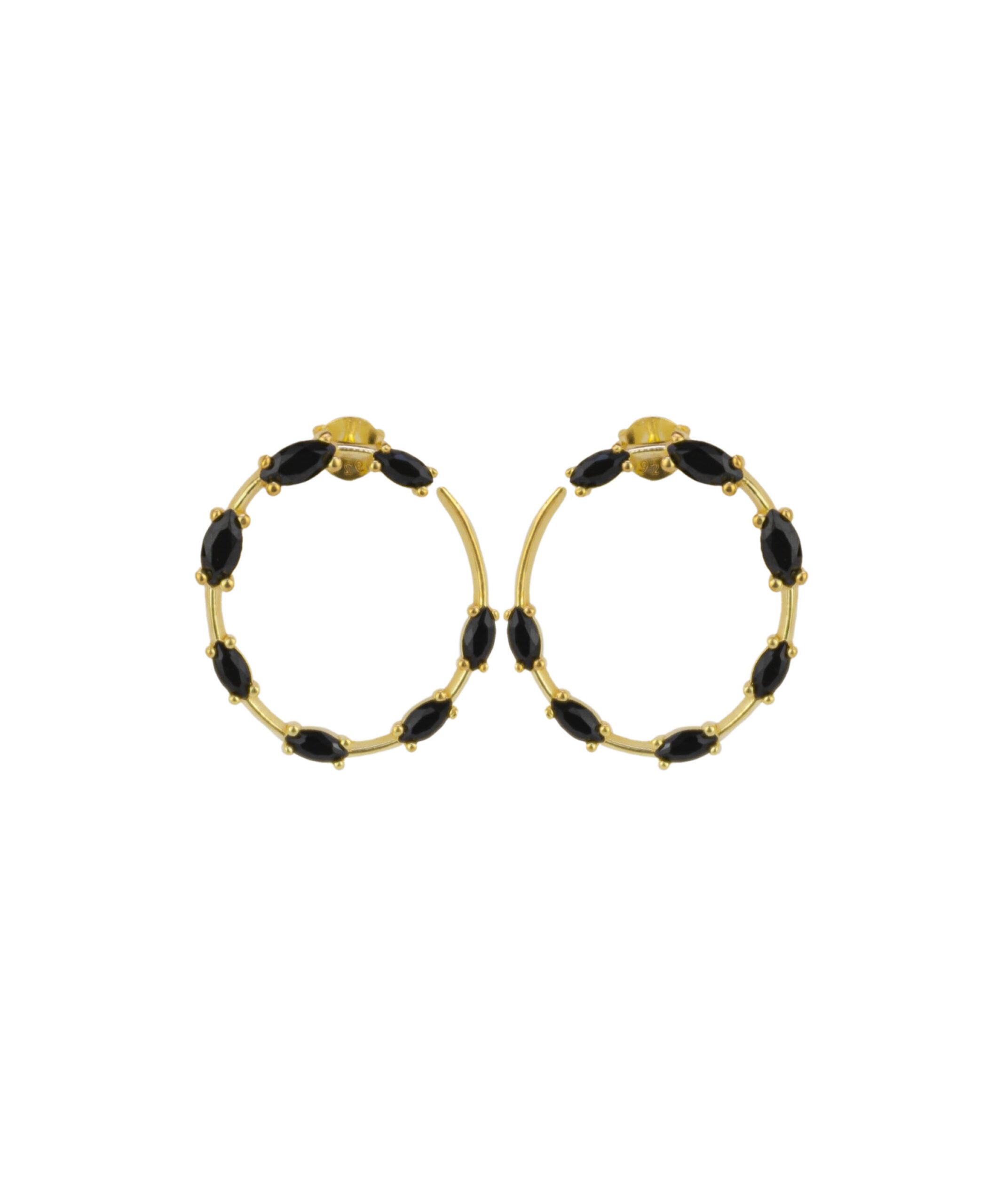 Pendientes aros en plata de ley chapados en oro con circonitas ovales negras por todo el aro.