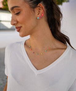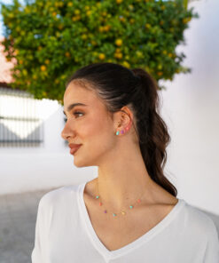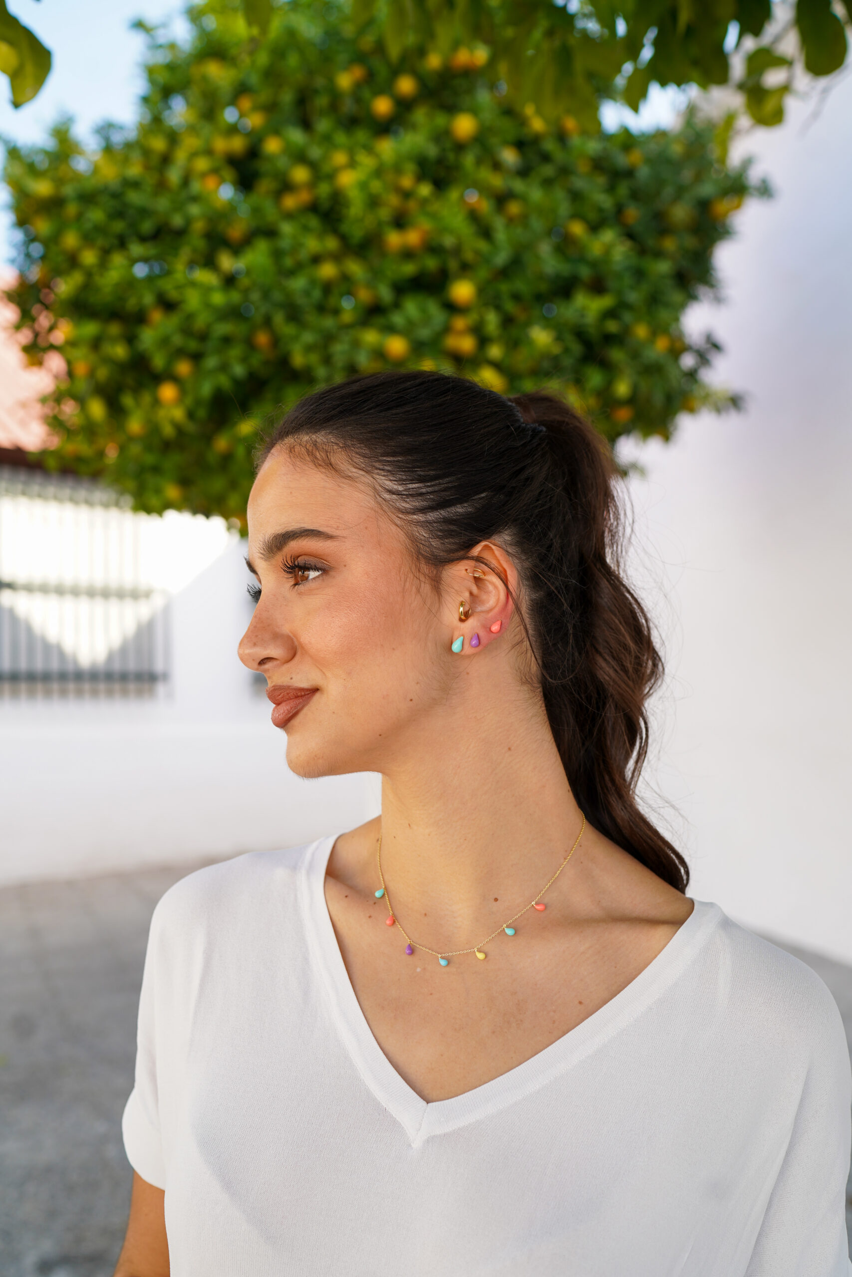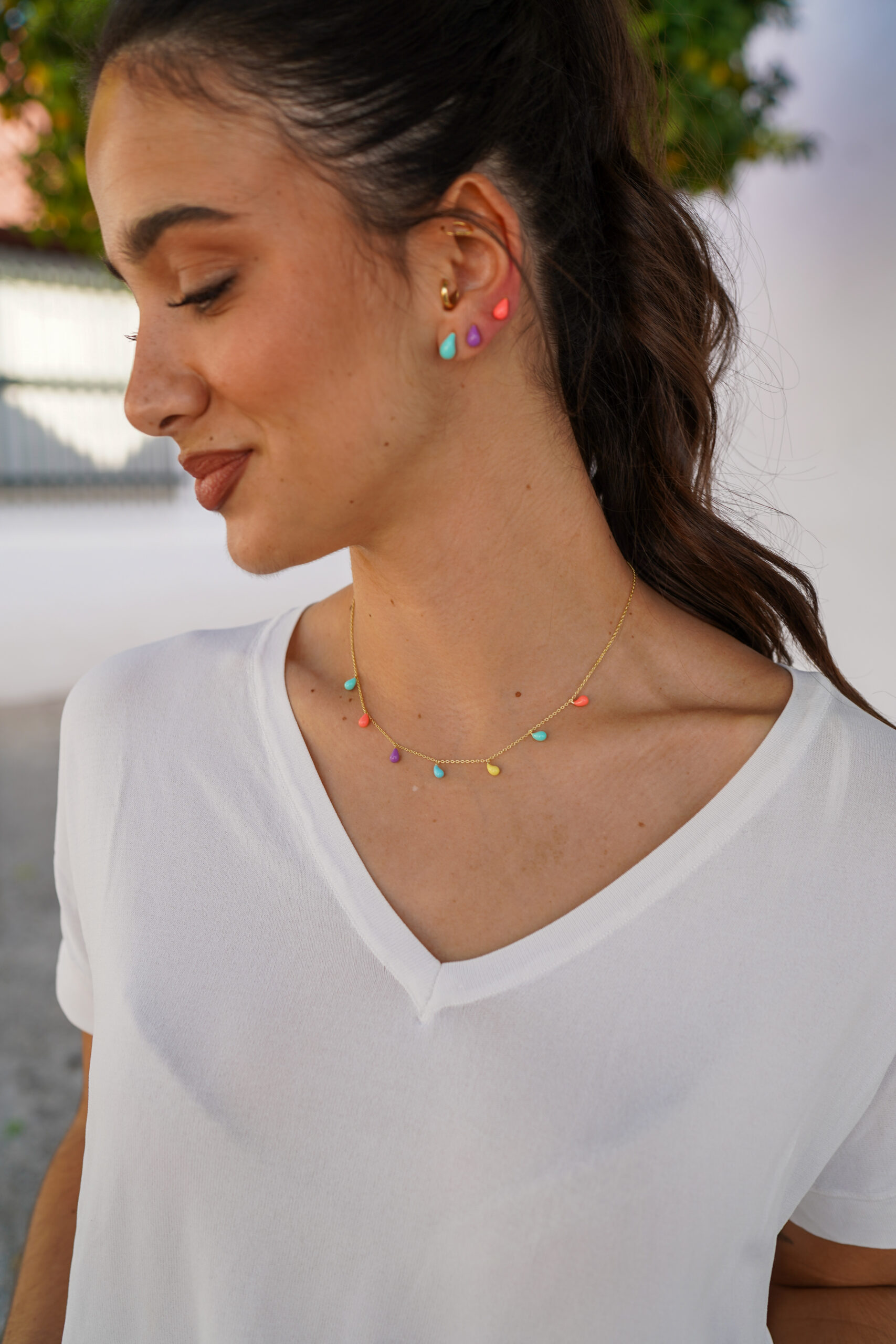 Pendiente en plata de ley chapado en oro con forma de gota de esmalte verde agua.