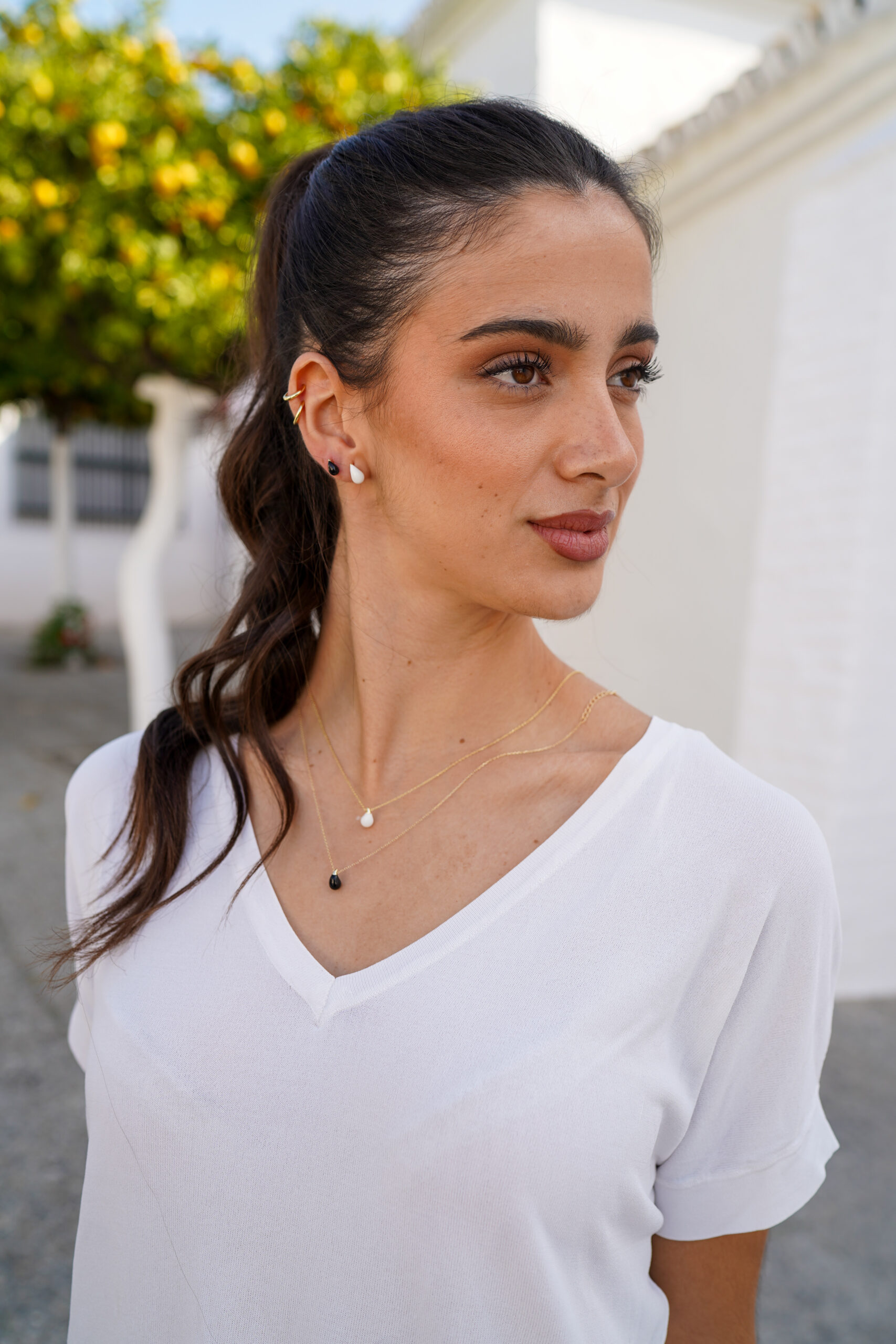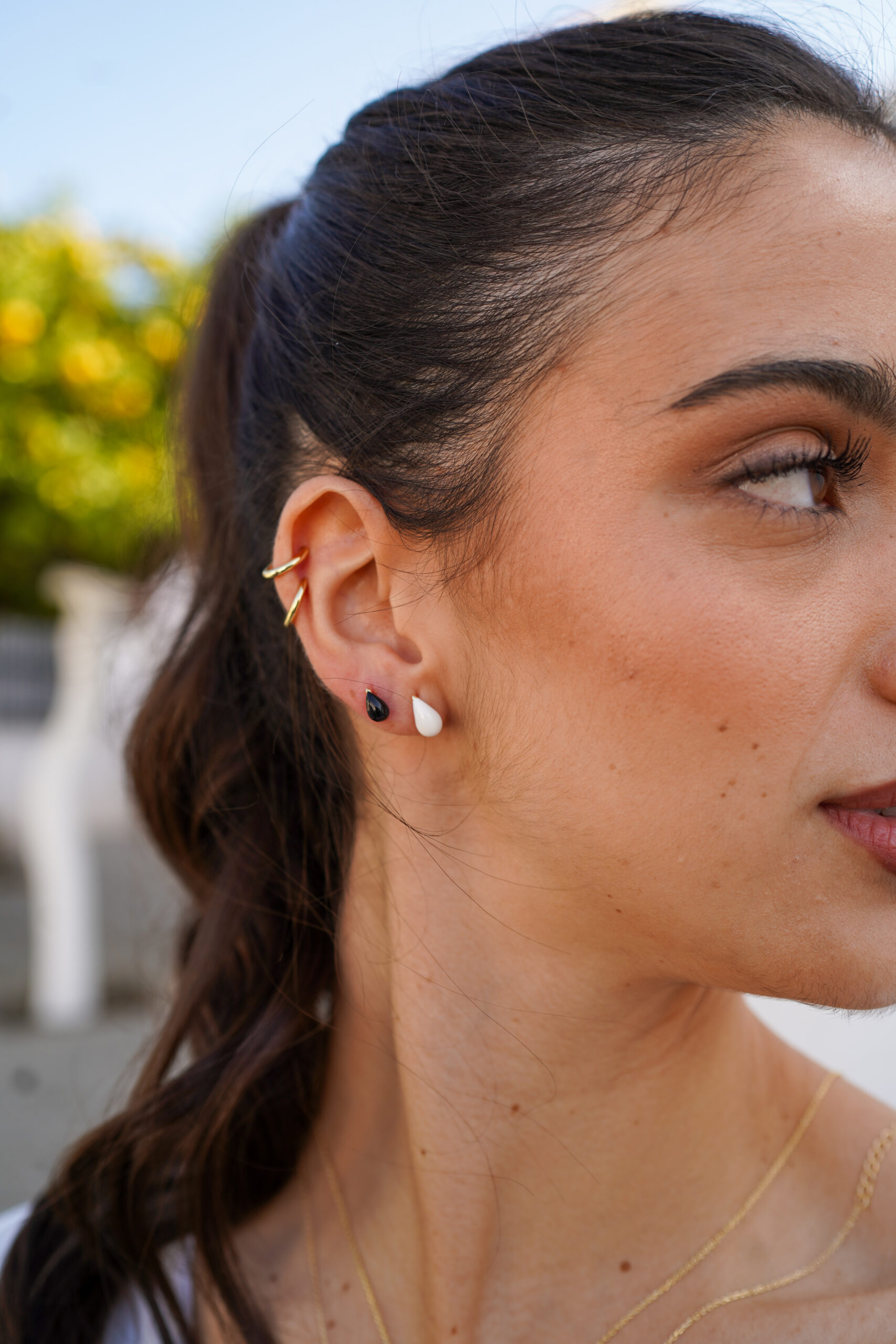 Pendiente mini en plata de ley chapado en oro con forma de gota de esmalte negro.