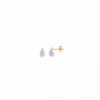 Pendiente mini en plata de ley chapado en oro con forma de gota de esmalte rosa.