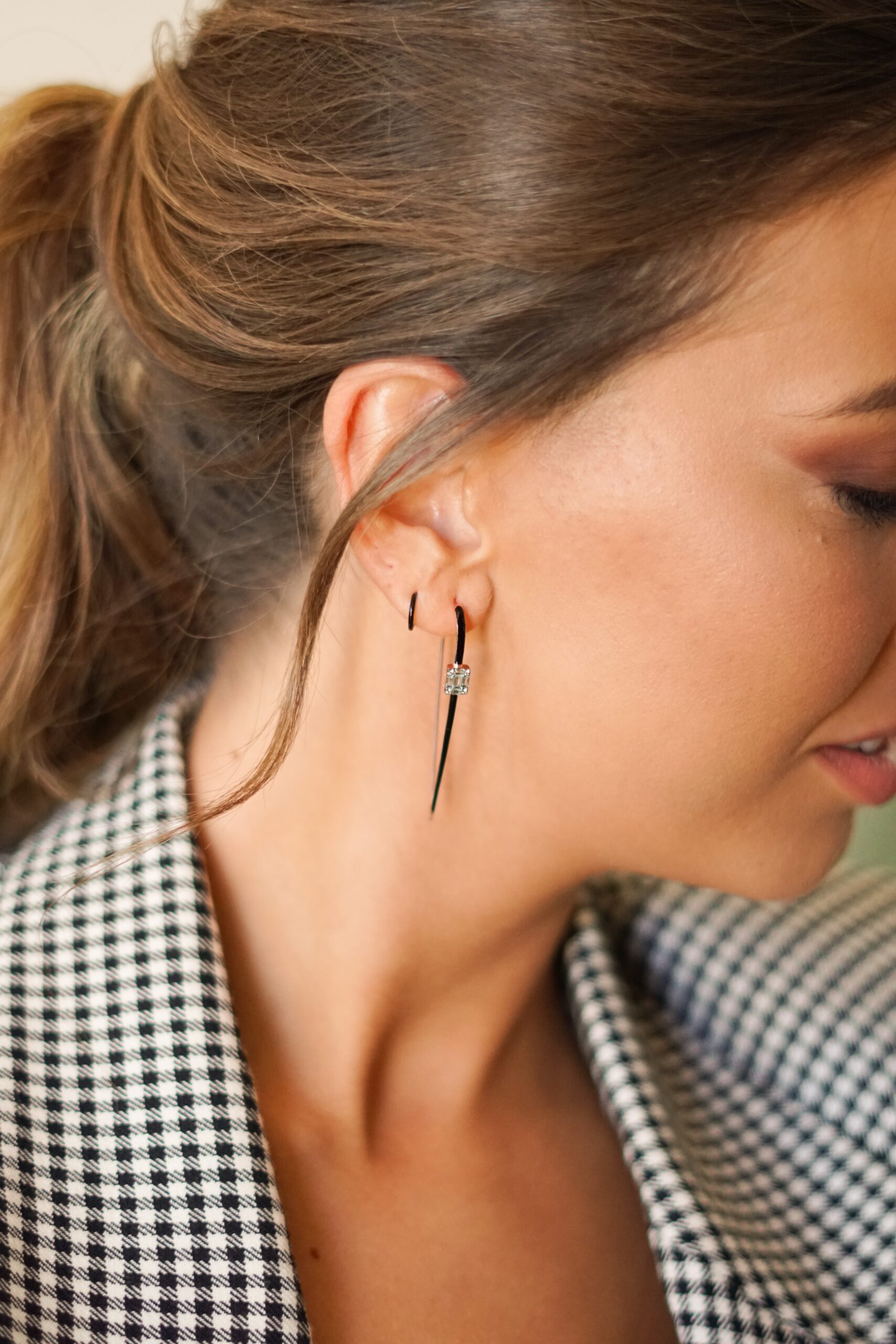 Pendiente aro mini en plata de ley chapado en oro recubierto por esmalte de color negro.