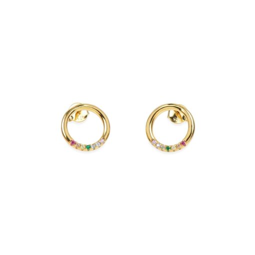 Pendientes en plata de ley chapados en oro con circonitas de colores con forma circular.