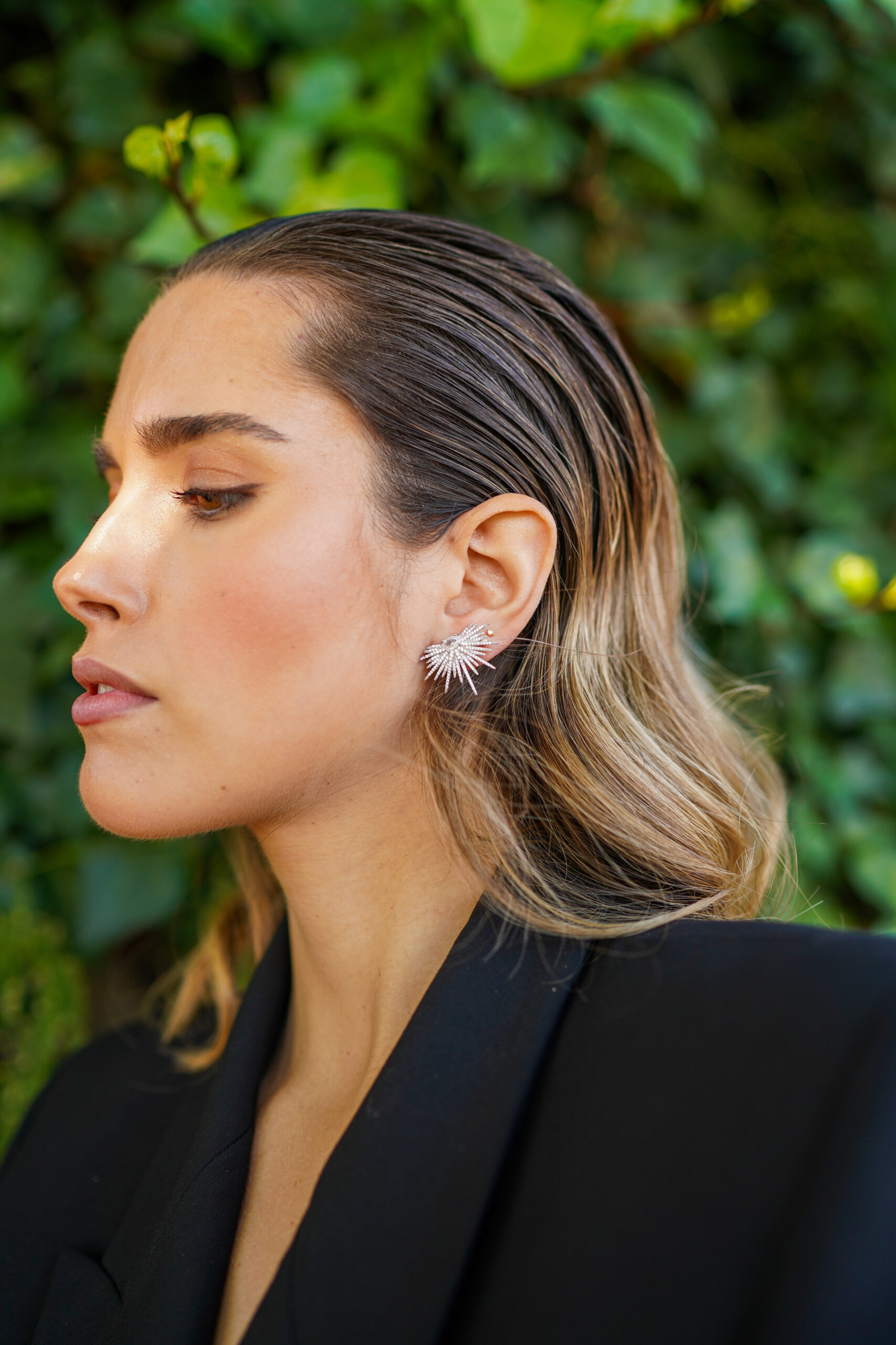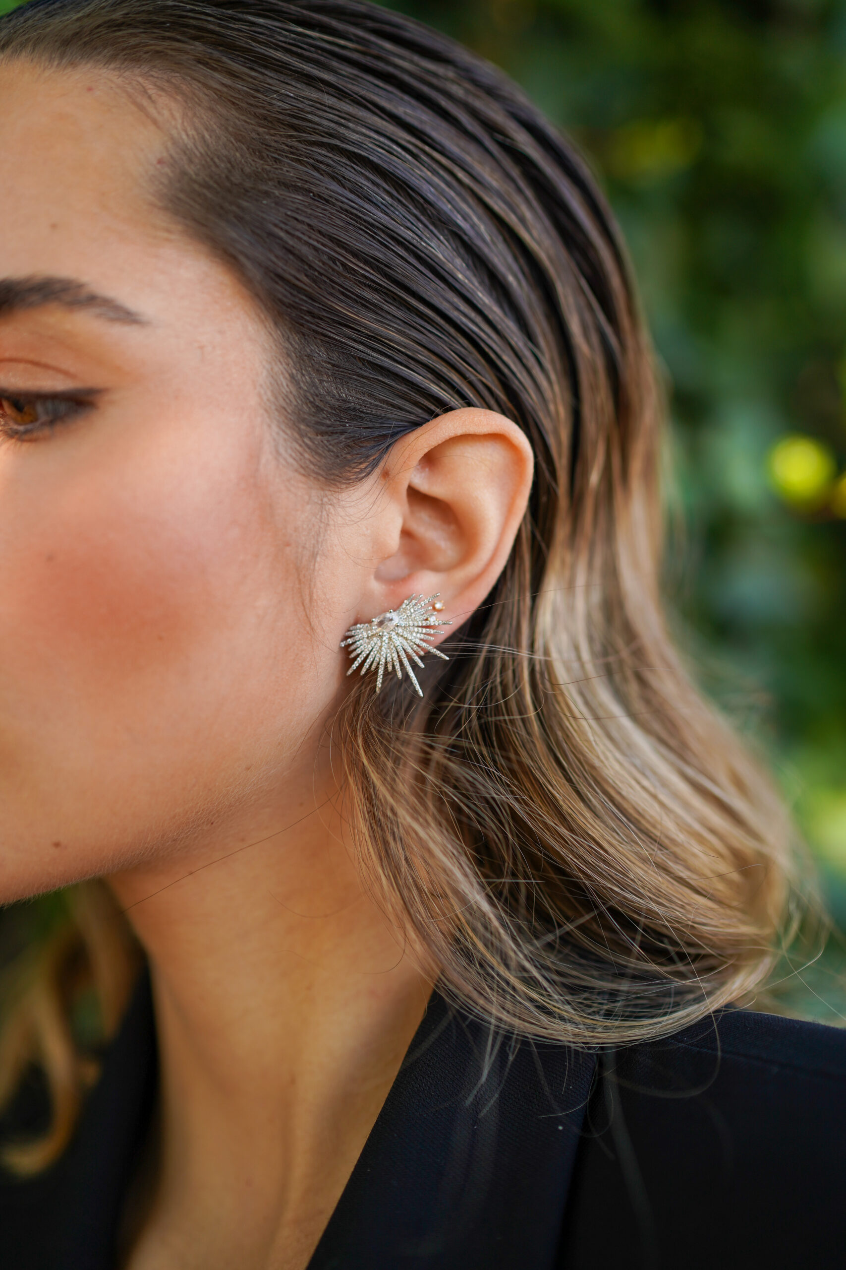 Pendientes en plata de ley en forma de pinchos con circonitas.