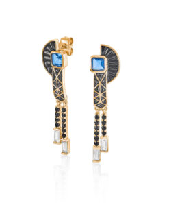 El diseño de estos pendientes evoca la sofisticación y el poder de Cleopatra, reina de Egipto, quien supo integrar el lujo y la simbología en sus ornamentos, reflejando la majestuosidad y el misterio de su reinado.