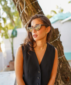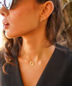Pendientes en plata de ley chapados en oro con colgante en forma de hexágono con circonitas de diferentes formas.