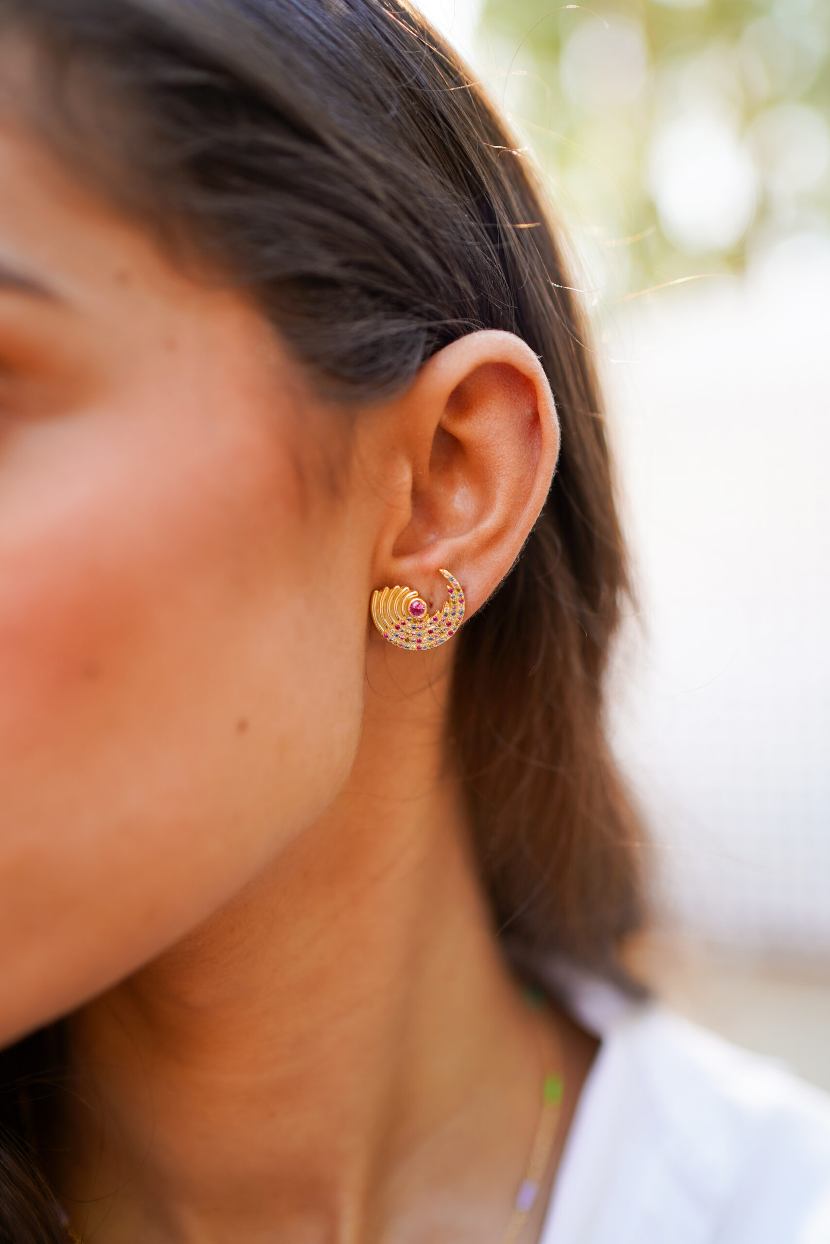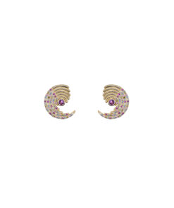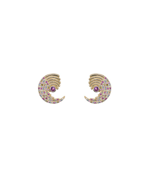 Pendientes en plata de ley chapados en oro en forma de semicírculo con circonitas de colores.