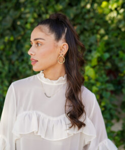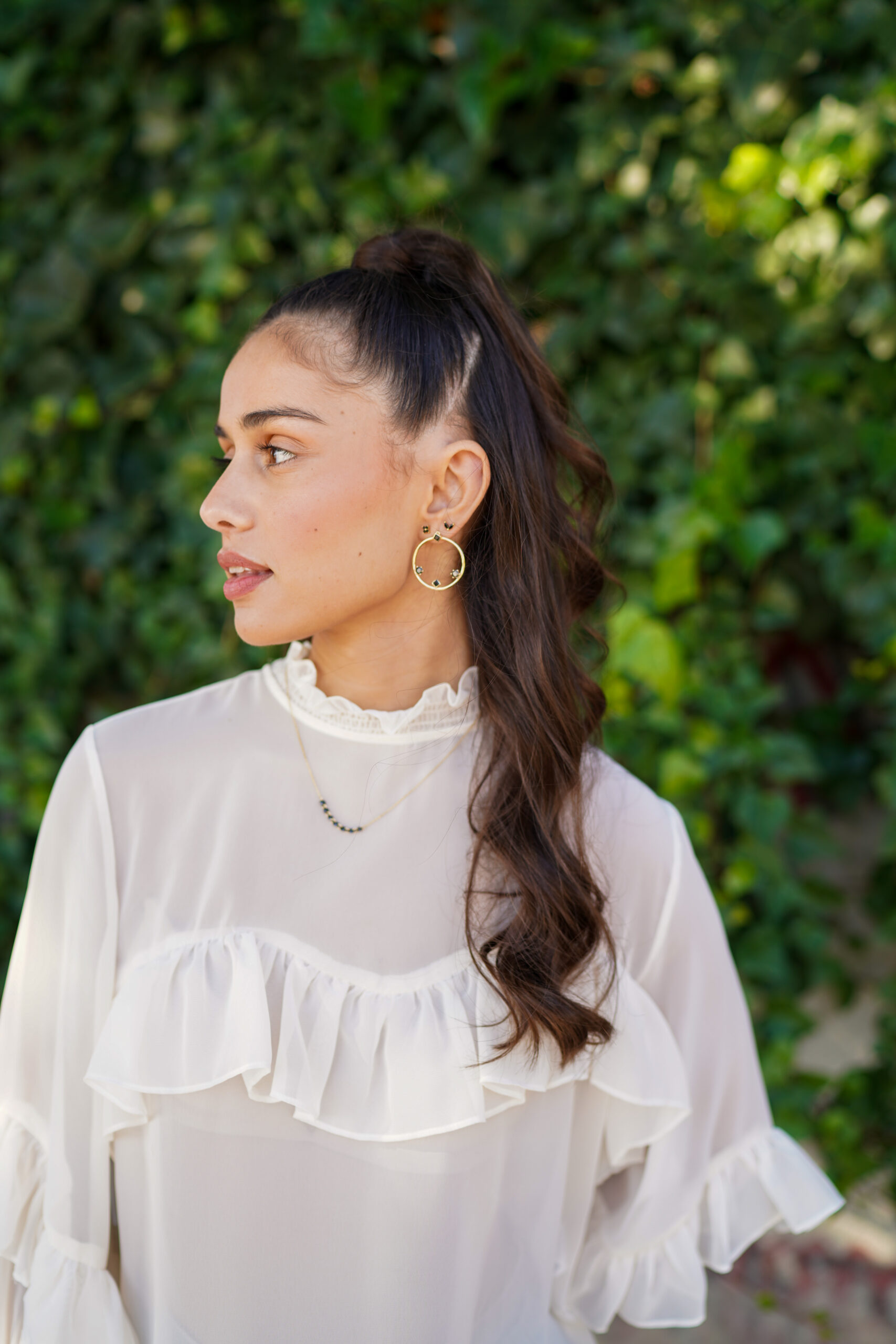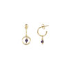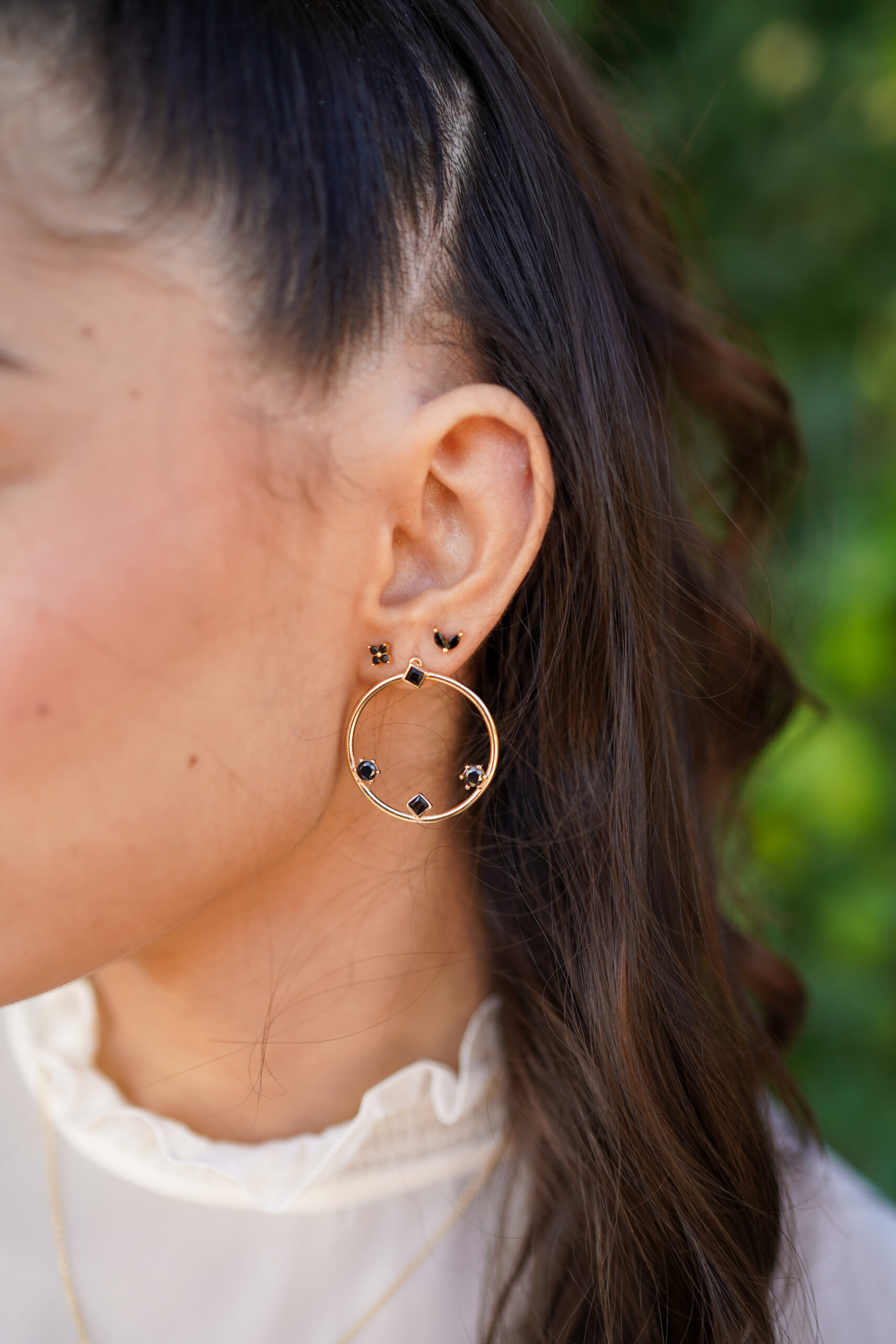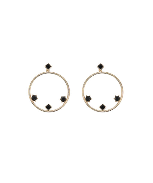 Pendientes en plata de ley chapados en oro circulares con circonitas negras de diferentes formas.