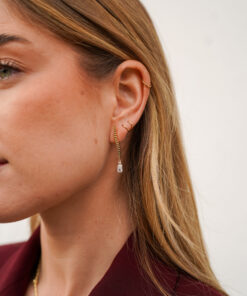Inspirados en el Himalaya, estos pendientes evocan la silueta imponente de sus montañas y la pureza de sus cumbres nevadas. La curva dorada recuerda a las pendientes escarpadas de la cordillera mientras la circonita simboliza el brillo helado de las alturas, transmitiendo calma, grandeza y belleza natural.