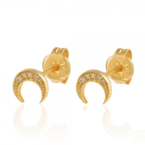 Pendientes en plata de ley chapados en oro con forma de luna y circonitas