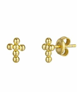 Pendientes mini en plata de ley chapados en oro con forma de cruz de bolitas