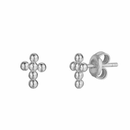 Pendientes mini en plata de ley con forma de cruz de bolitas