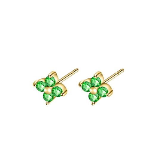Pendientes mini en plata de ley chapados en oro con forma de flor con cuatro circonitas verde turmalina.